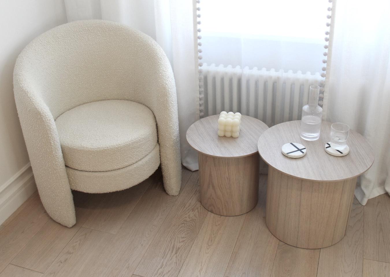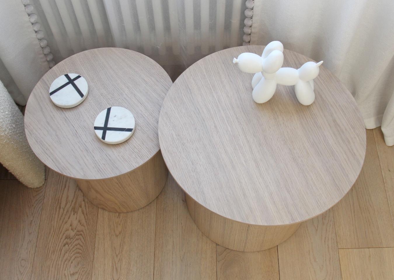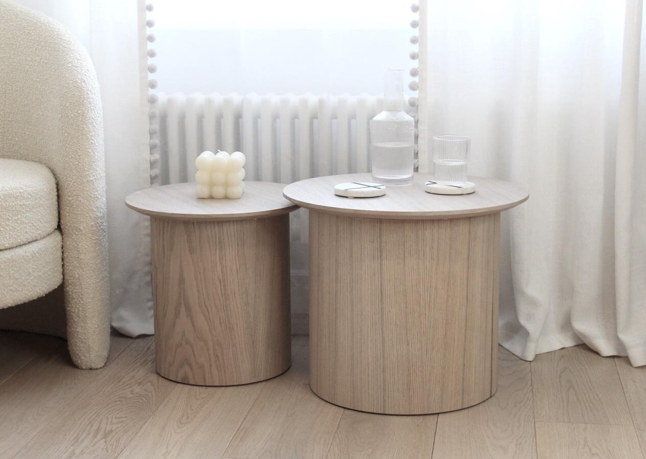 Оригинальные столики из коллекции Type станут ярким акцентом любой комнаты Благодаря широкому размерному ряду можно организовать уютную зону в гостиной, использовать столики в качестве прикроватных или дополнить интерьер детской комнаты При производстве используется шпон натурального дуба, покрытие белый полупрозрачный лак или эмаль Высота: 41 см Диаметр столешницы: 50 см Диаметр основания: 39 см Материал: шпон дуба, береза, мдф Покрытие: лак