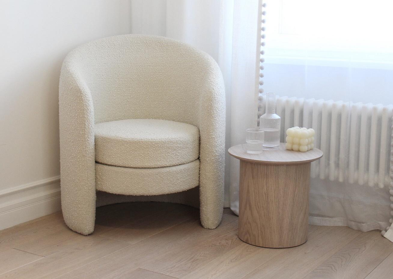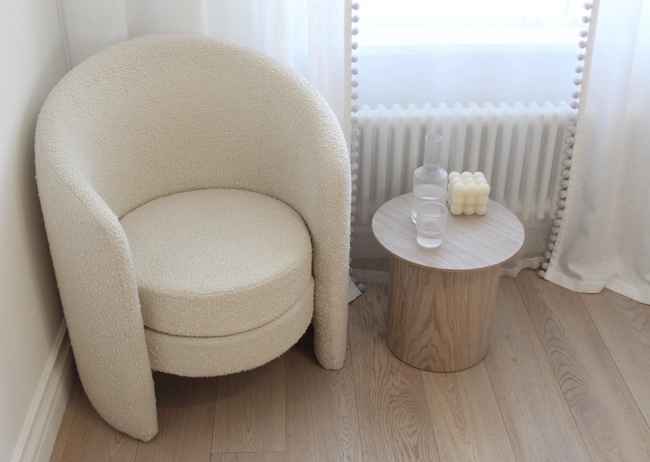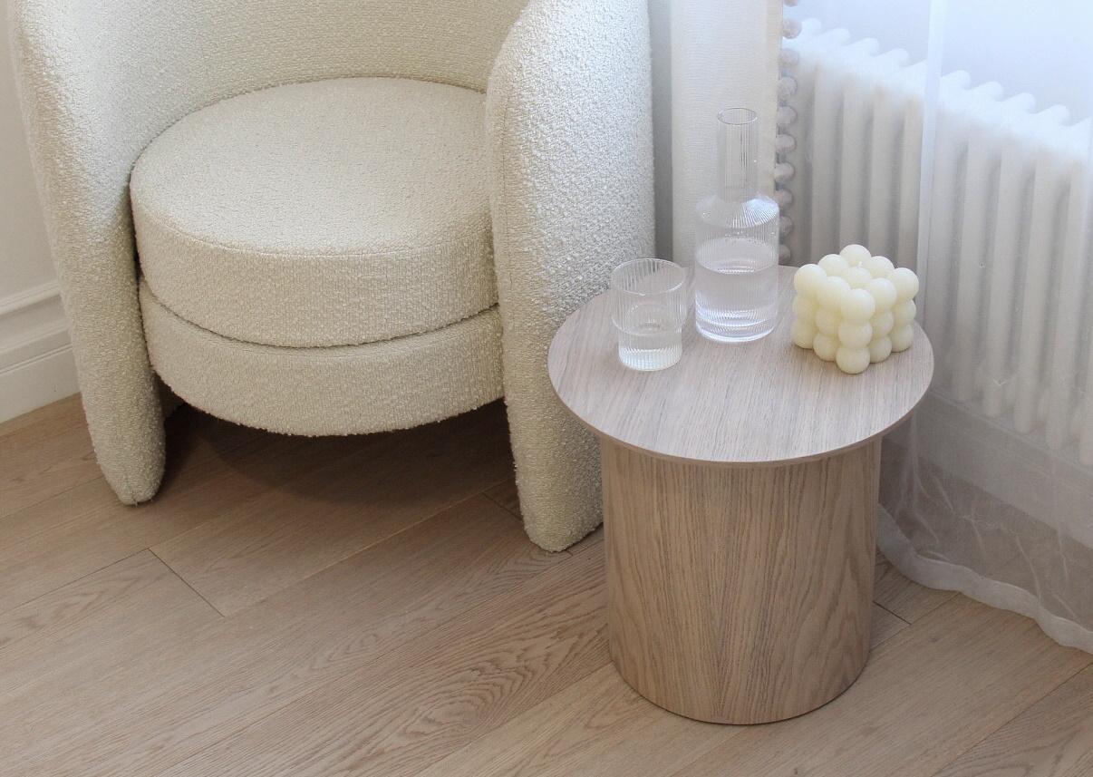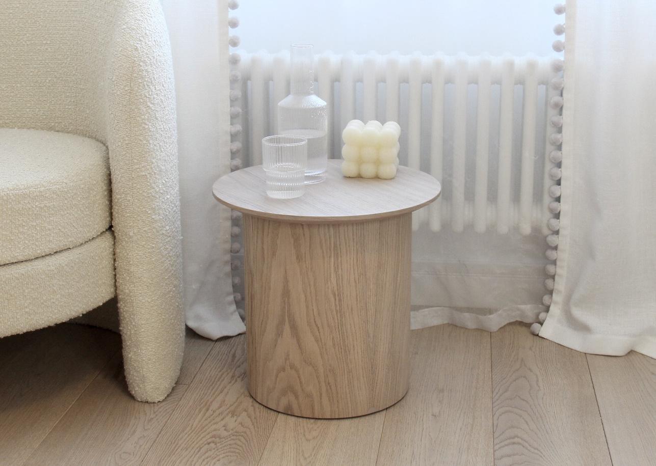 Оригинальные столики из коллекции Type станут стильным акцентом любой комнаты Благодаря широкому размерному ряду можно организовать уютную зону в гостиной, использовать столики в качестве прикроватных или дополнить интерьер детской комнаты При производстве используется шпон натурального дуба, покрытие белый полупрозрачный лак или эмаль Высота: 37,5 см Диаметр столешницы: 40 см Диаметр основания: 29 см Материал: шпон дуба, береза, мдф Покрытие: лак