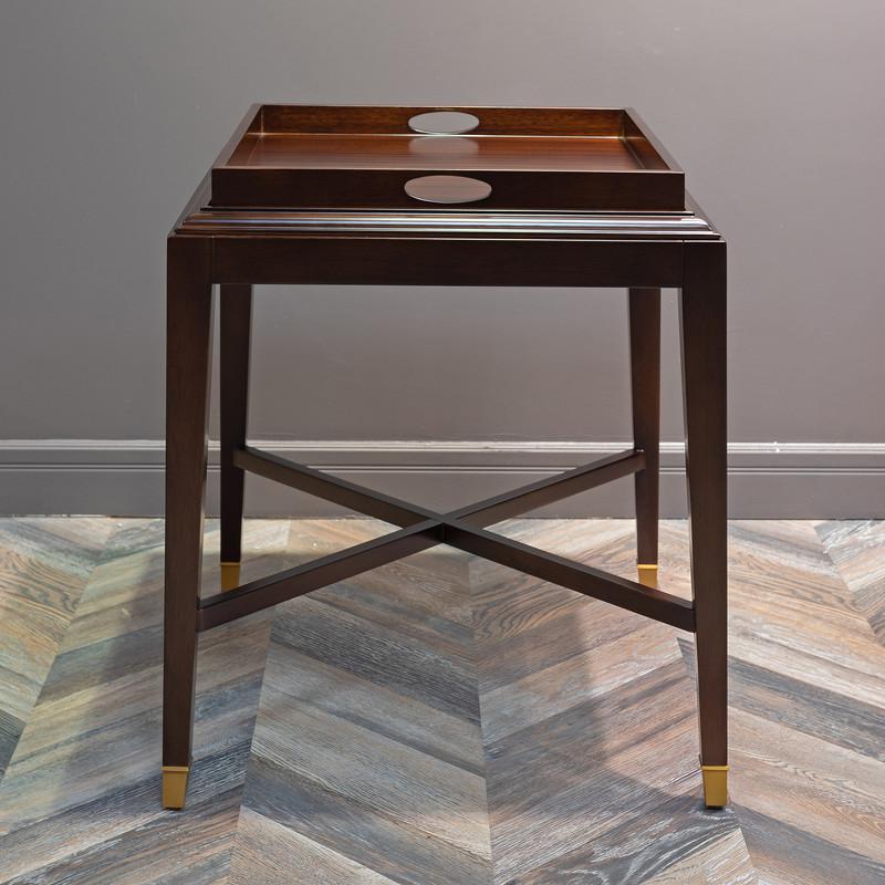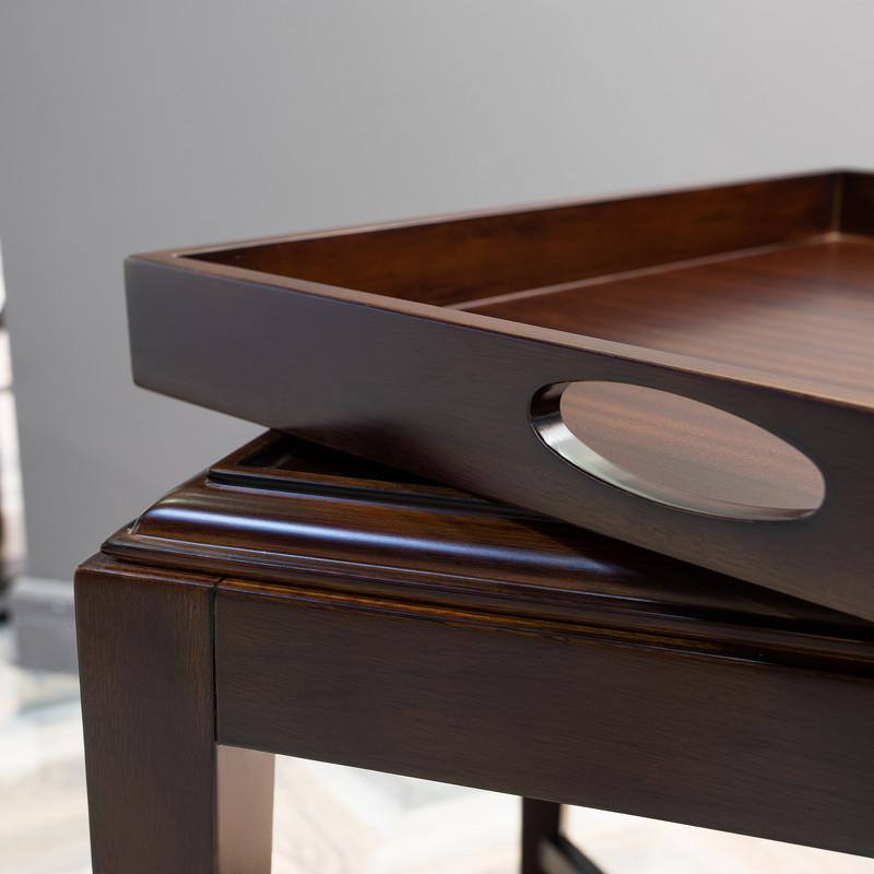 Приставной столик в стиле неоклассика от итальянского бренда Fratelli Barri. Удобный вариант для гостиной или спальни. Каркас — массив дерева и высококачественная МДФ высокой плотности, отделка — натуральный шпон махагона. Столешница дополнена подносом с ручками. Модель принадлежит к коллекции мебели Mestre в стиле неоклассика от Fratelli Barri. Здесь вы можете найти мебель для гостиной, столовой и спальни: сотни вариантов доступны для комбинации друг с другом.