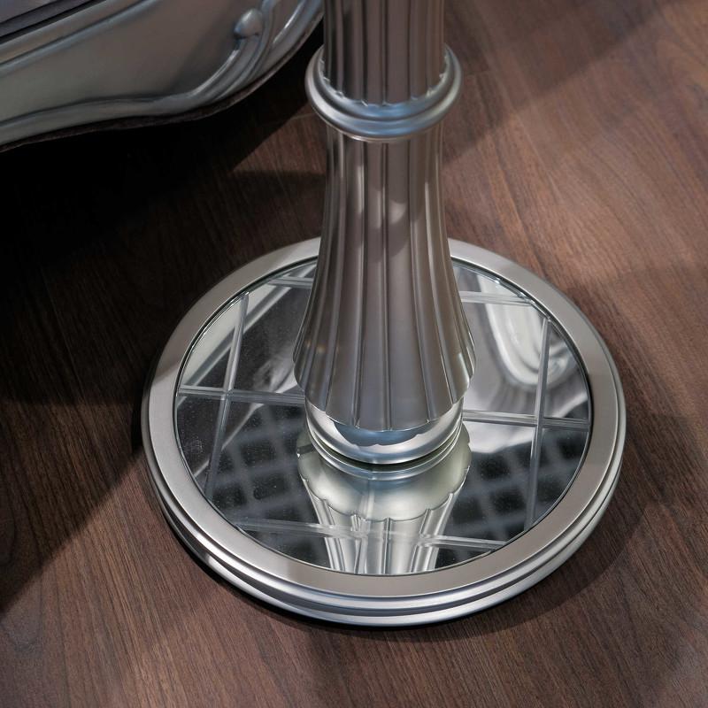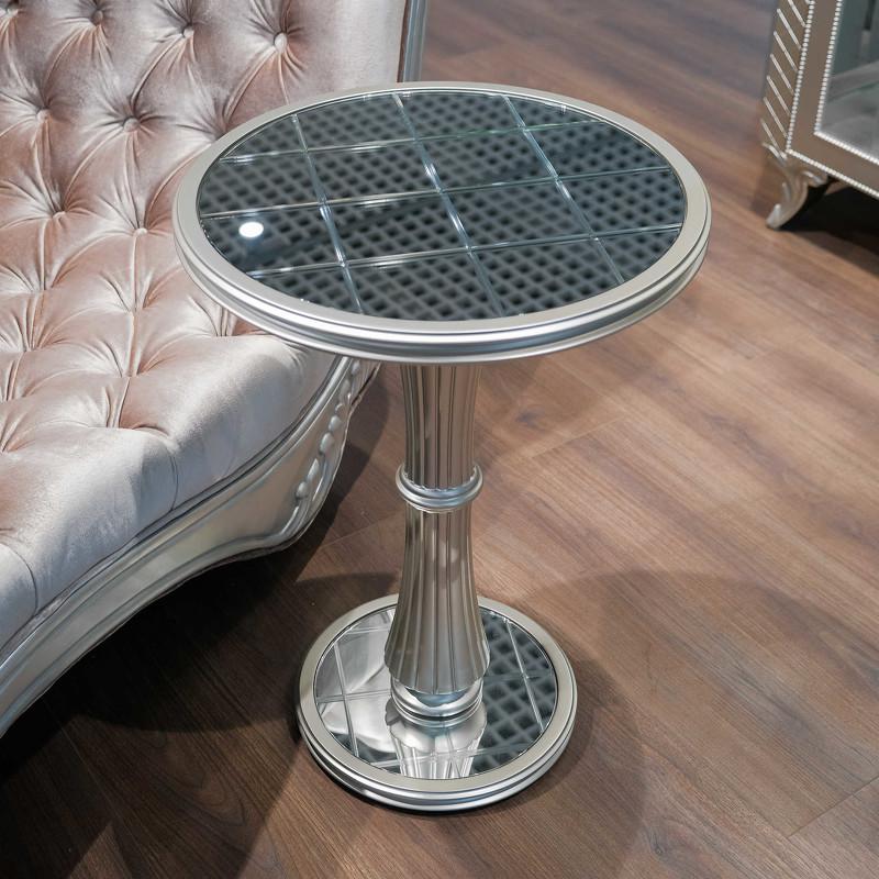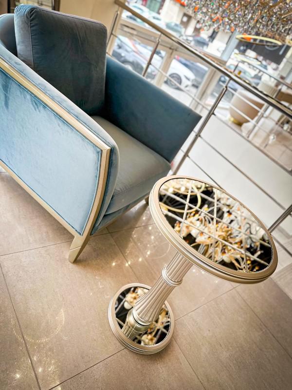 Приставной столик Florence от итальянского бренда Fratelli Barri с круглой столешницей и круглой базой выполнен в стиле близком к классическому. Зеркальные топ и база придают особый шарм этому поистине изысканному предмету интерьера. Топ и база выполнены из МДФ класса Е1. Ножка - из массива дерева. Отделка - серебряное напыление, покрытое лаком.