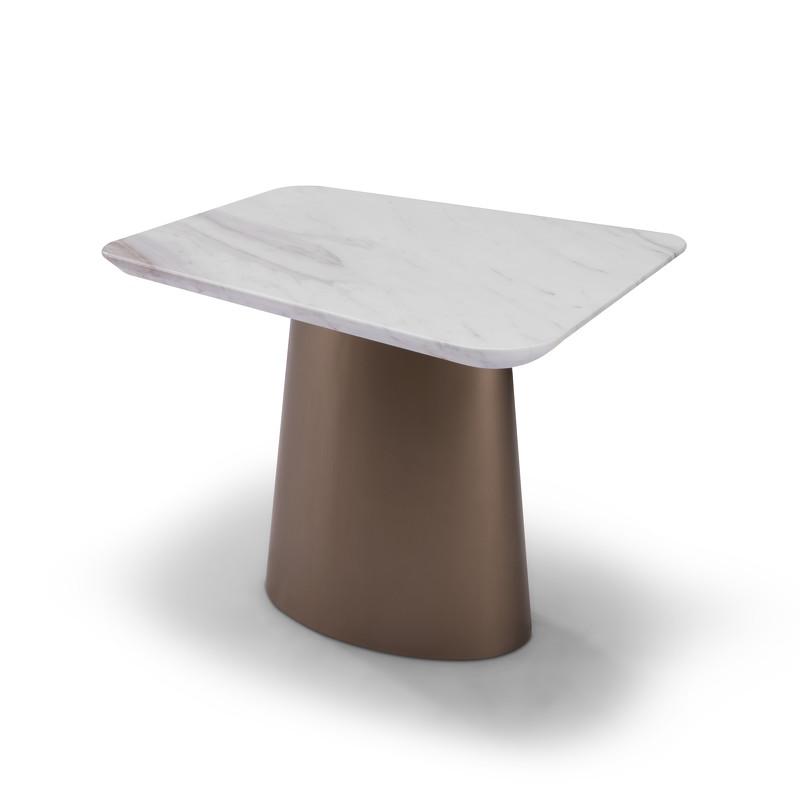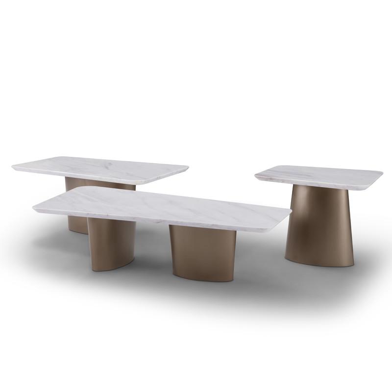 Приставной столик от итальянского бренда Fratelli Barri - идеальное дополнение для современной гостиной. Столик выполнен из высококачественного МДФ высокой плотности. Столешница выполнена из белого мрамора, с матовой белой нижней панелью. Основание в отделке цвета латунь. К столику есть дополнение в виде двух столиков других размеров. Такая группа из трех столов привнесет в помещение большего стиля и функционала, а также, интересную игру высот.