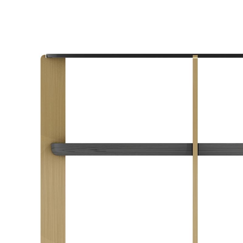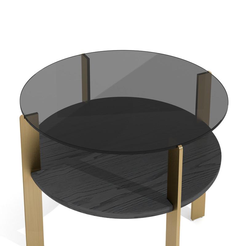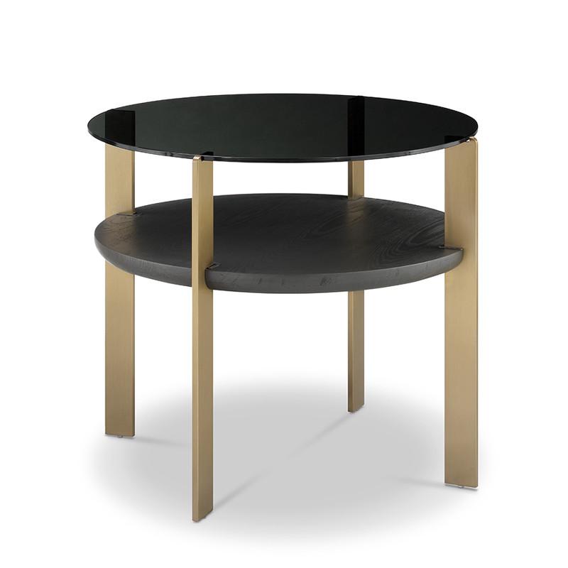 Приставной столик от итальянского бренда Fratelli Barri - воплощение функционала и утонченного стиля для современной гостиной. Основание столика выполнено в цвете матовая бронза, верхняя столешница из черного закаленного стекла, нижняя в отделке темным шпоном.