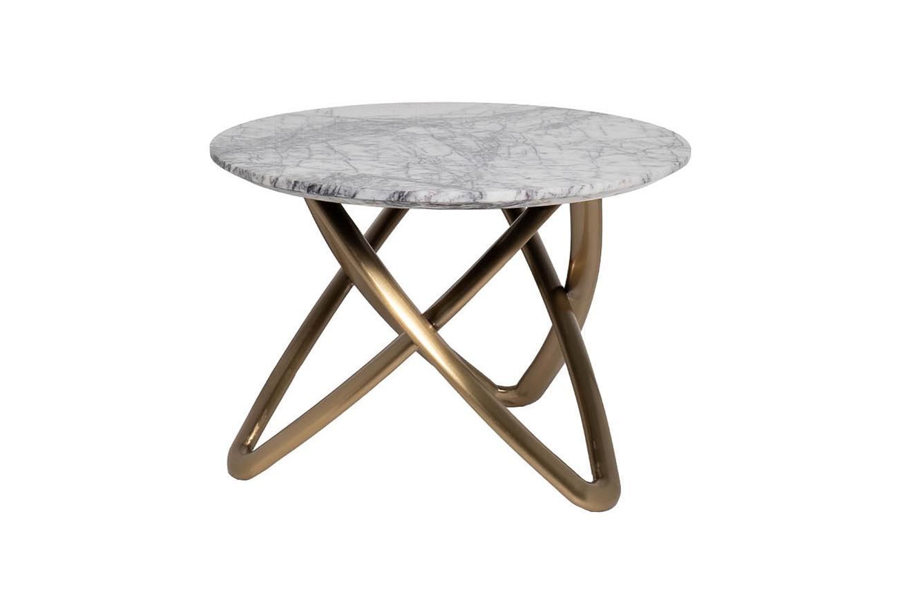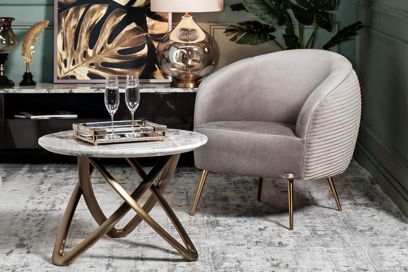 description-full - Мраморный журнальный стол станет эффектным украшением гостиной в стилистике ар-деко. Столешница выполнена из цельной плиты природного мрамора, без каких-либо дополнительных покрытий. Поверхность отполирована, но не идеально гладкая – встречаются прожилки, трещинки, включения, что придает мебели особенного шика. Каждый журнальный стол этой модели уникален – рисунок мраморной столешницы не повторяется. Опора оригинальной формы выполнена из нержавеющей стали с золотистым оттенком. Современный круглый журнальный столик идеально дополнит собой обстановку гостиной, прекрасно впишется в любое современное пространство. Толщина столешницы - 36мм. Сочетается со столиком 57EL-STOL/ZH-790A