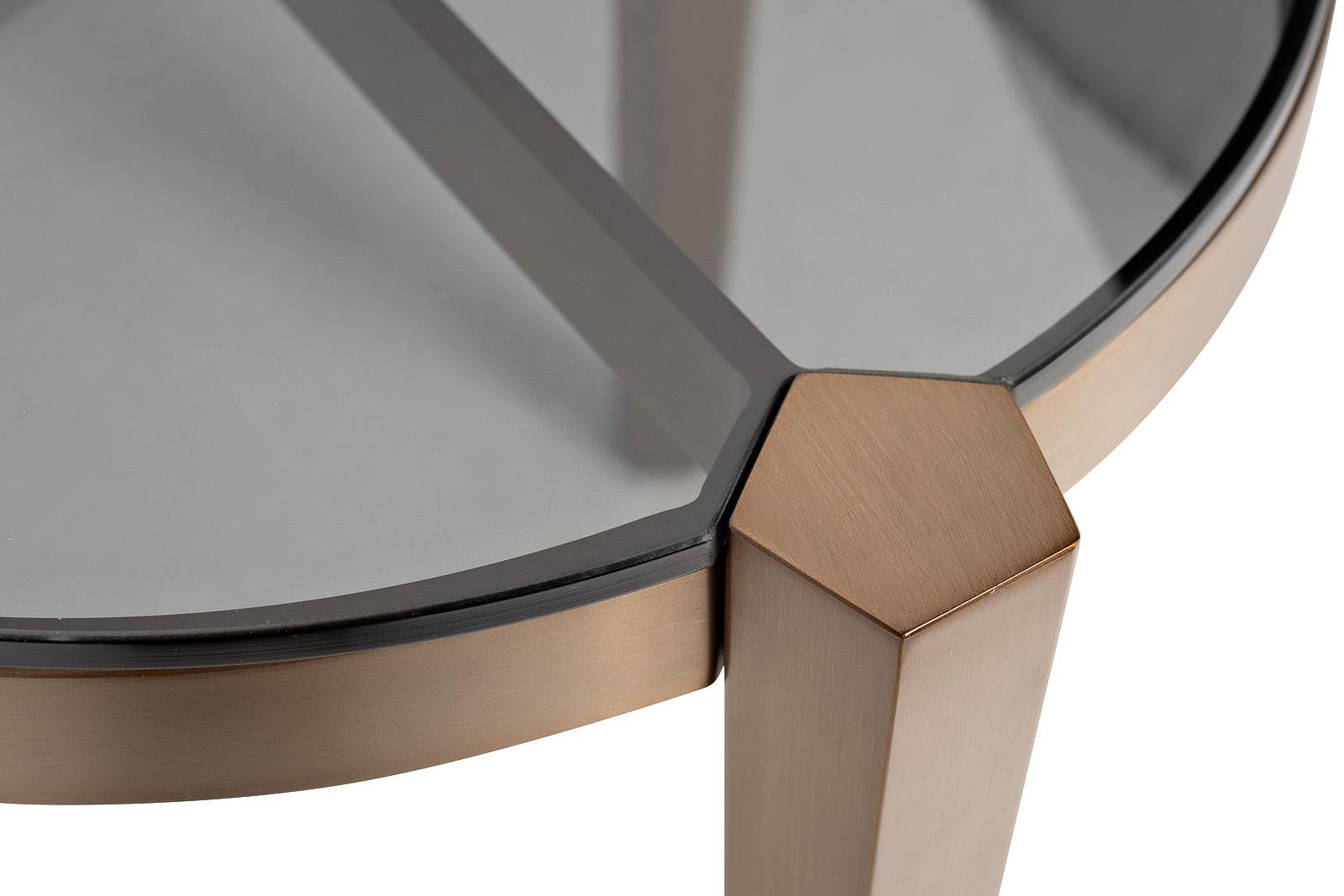 description-full - Этот журнальный столик является квинтэссенцией функциональности и утонченного дизайна в компактном формате. Его пропорции и гармоничное сочетание материалов делают его идеальным дополнением к пространству для отдыха, подчеркивая его продуманность. Уменьшенная версия круглого журнального стола из этой серии, сохраняющая всю его эстетику и характер. Дымчатая стеклянная столешница обеспечивает визуальную легкость, позволяя основе столика выступать как самостоятельный эстетический элемент. Изящные, слегка сужающиеся к низу ножки из сатинированного металла несут в себе отсылку к индустриальному шику, смягченному общей элегантностью. Этот малый круглый столик идеально подходит для размещения чашки кофе, книги или декоративного элемента, становясь незаметным, но при этом стильным помощником. В нашем ассортименте вы можете подобрать так же другие журнальные столы этой серии, но другого размера: арт. 58DB-15857, 58DB-25857