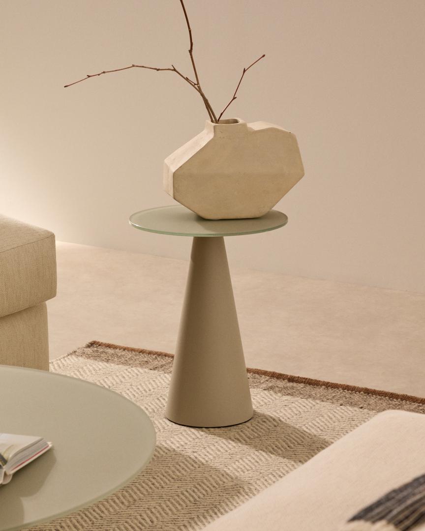 Столик La Forma (ех Julia Grup) Журнальный столик Wilshire из матового стекла и стали матово-серый Ø35 см арт. 261697