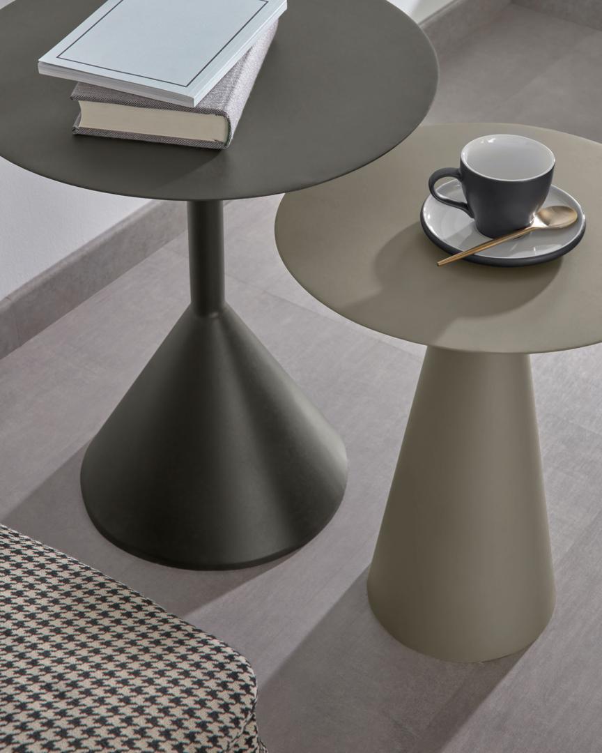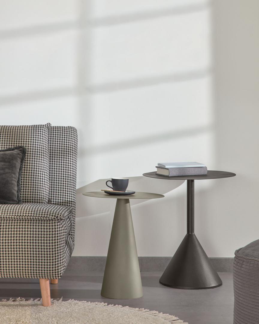 Приставной столик Shirel Ø 40 cm зеленый от фабрики La Forma – практичная и стильная модель, построенная на простой геометрии. Приставной столик Shirel создан для поклонников минимализма. Он лаконичен и прост в своем исполнении, однако выглядит стильно и современно. Круглая форма и прочный металл – это однозначно полезные свойства. Благодаря им, изделие легко встанет в любой угол комнаты и стойко выдерживает случайные удары. Столик состоит из круглой столешницы и конусной стойки. Он полностью сделан из металла, который покрыт матовой серо-зеленой порошковой краской. Покрытие обеспечивает простой уход, защищает металл от негативного воздействия влаги. Основание стойки оснащено войлочной подушкой для защиты напольного покрытия от повреждений. Максимально допустимая нагрузка на столик не должна превышать 8 кг. Размеры: диаметр – 40 см, высота – 49 см. Столешница имеет толщину 2 мм. Вес – 3, 47 кг. Сборка не требуется.