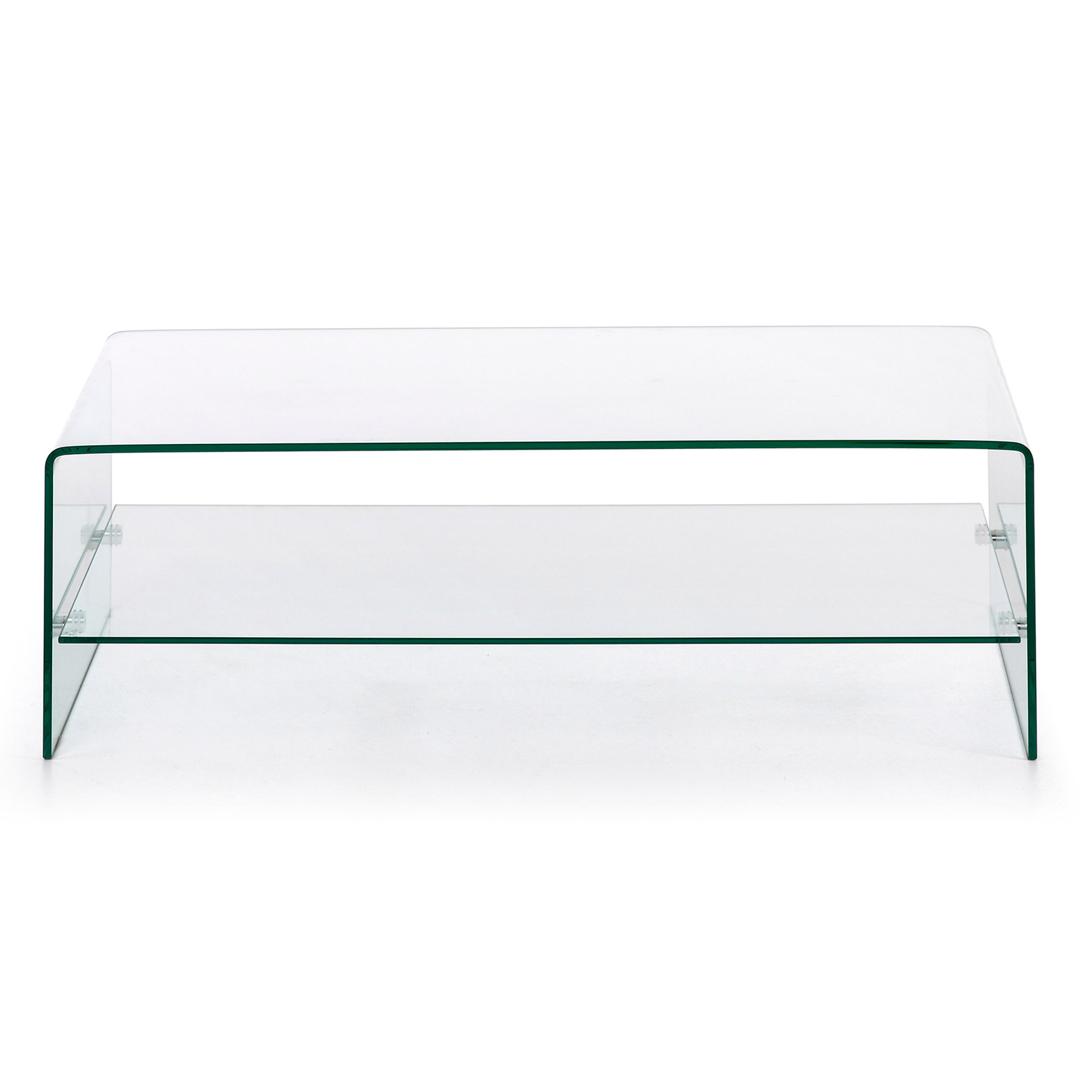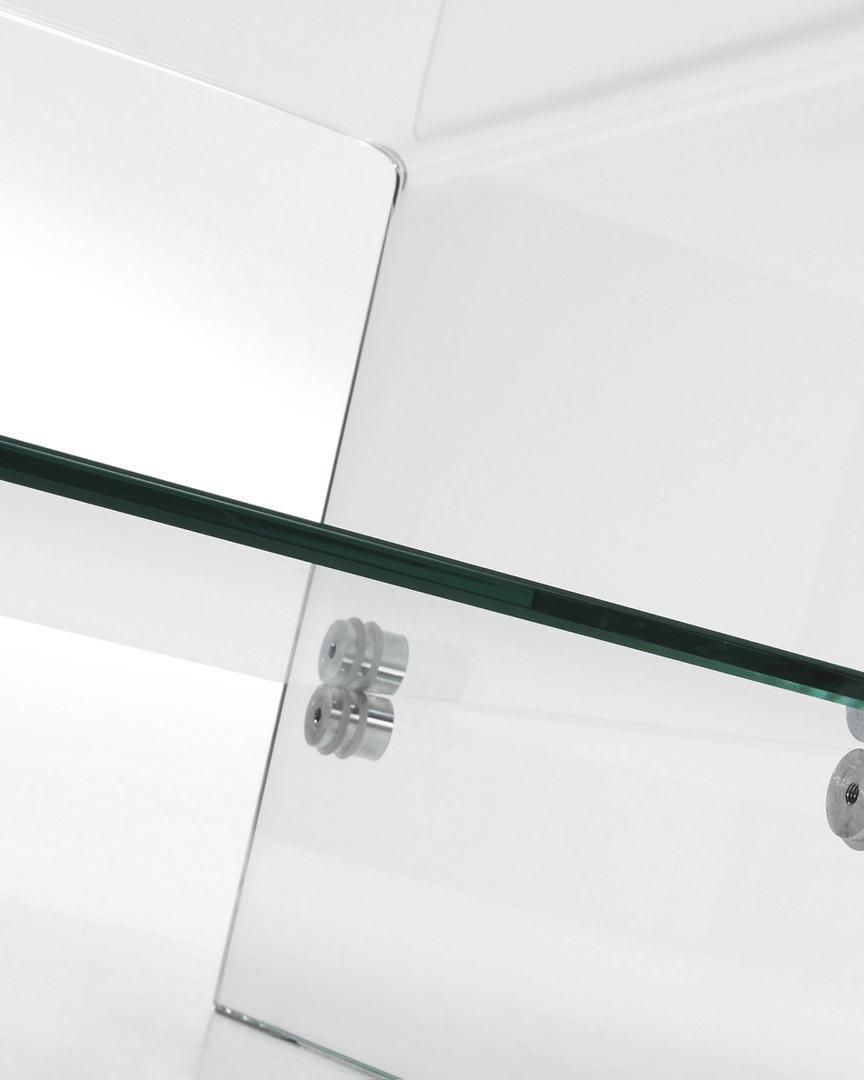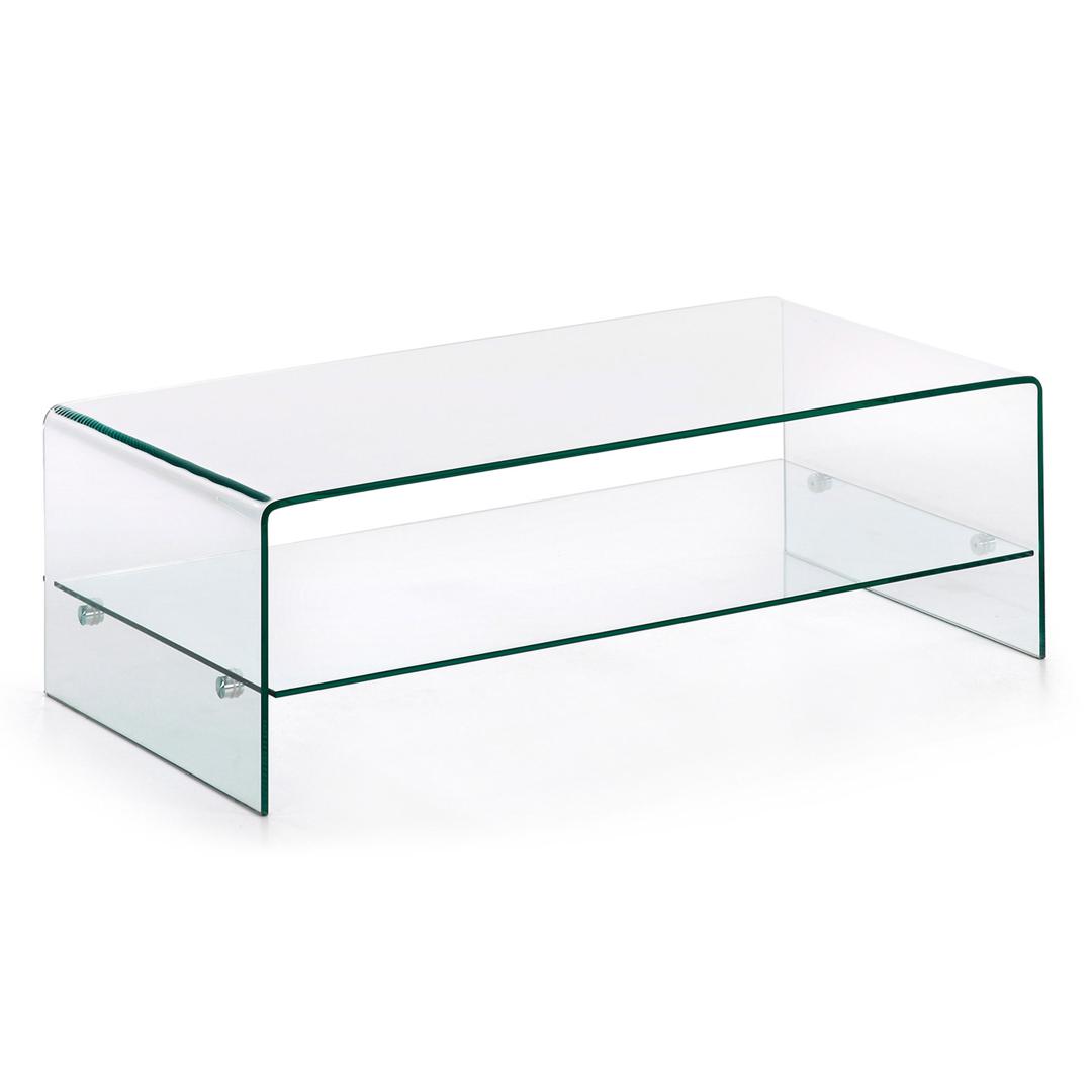 Стеклянный столик Burano от фабрики La Forma – закаленное стекло и лаконичная конструкция для городского модерна. Стеклянный столик Burano – идеальная модель для тех кому важно сохранить баланс цвета в созданном интерьере и не навредить свободному пространству. Эта модель бесцветная, поэтому легко впишется в любую обстановку. А полностью прозрачная структура не заберет свет и визуально не закроет пространство. Стол прямоугольной формы. Он монолитный, с обтекаемыми углами. Стекло закаленное, толщиной 1 см. Оно имеет повышенную прочность и стойкость к высоким нагрузкам. На высоте 13 см от пола находится полка. Ее удерживают четыре крепежа, гарантирующие устойчивость сборки. Для защиты напольного покрытия от деформации, снизу предусмотрены специальные пластичные накладки. Максимальная нагрузка на стол не должна превышать 30 кг, на полку – 3 кг. Размеры: ширина – 110 см, глубина – 55 см, высота – 35 см. Вес – 38 кг. Потребуется небольшая сборка. Коллекция Burano включает также другие виды столиков, имеющие иные габариты и форму.