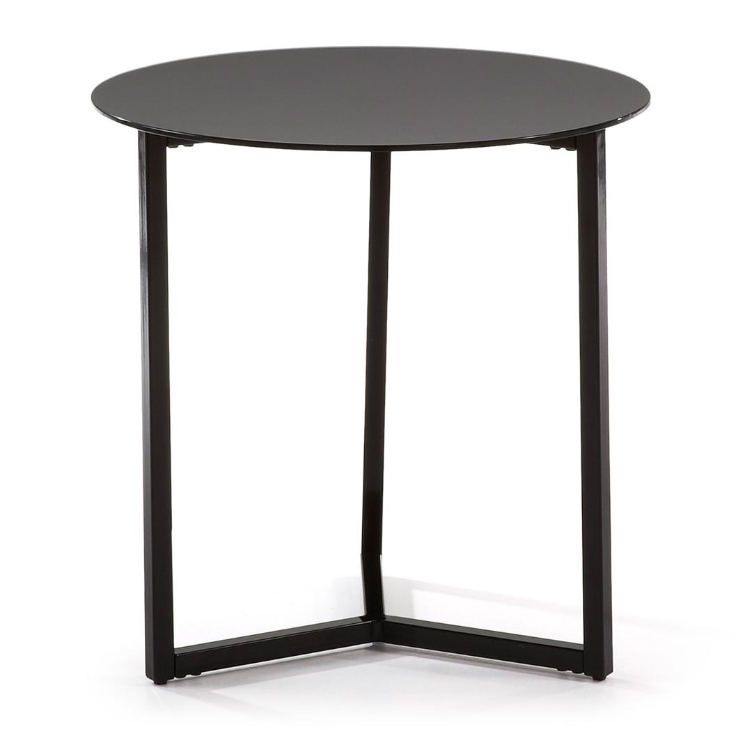 Столик Marae черный от фабрики La Forma – универсальный и компактный элемент интерьера для разных целей. Столик Marae лаконично дополнит интерьер и безусловно станет полезной вещью в доме. Круглая форма позволяет ставить его с любой стороны и в разные углы комнаты, а минималистичный дизайн и черный цвет точно подружатся с уже созданным интерьером. Столик круглый. Столешница выполнена из закаленного стекла, с черным покрытием с внутренней стороны. Удерживает столешницу металлическая опора, покрашенная в черный цвет. Она имеет рамочную конструкцию с тремя ножками по вертикали и тремя горизонтальными осями с обеих сторон. Металл обеспечивает изделию прочность, а такая форма опоры – устойчивость на любом напольном покрытии. Максимально допустимая нагрузка на изделие – 15 кг. Размеры: ширина – 50 см, глубина – 50 см, высота – 49,5 см. Вес изделия составляет 4,8 кг. Потребуется сборка, которая займет 15 минут.