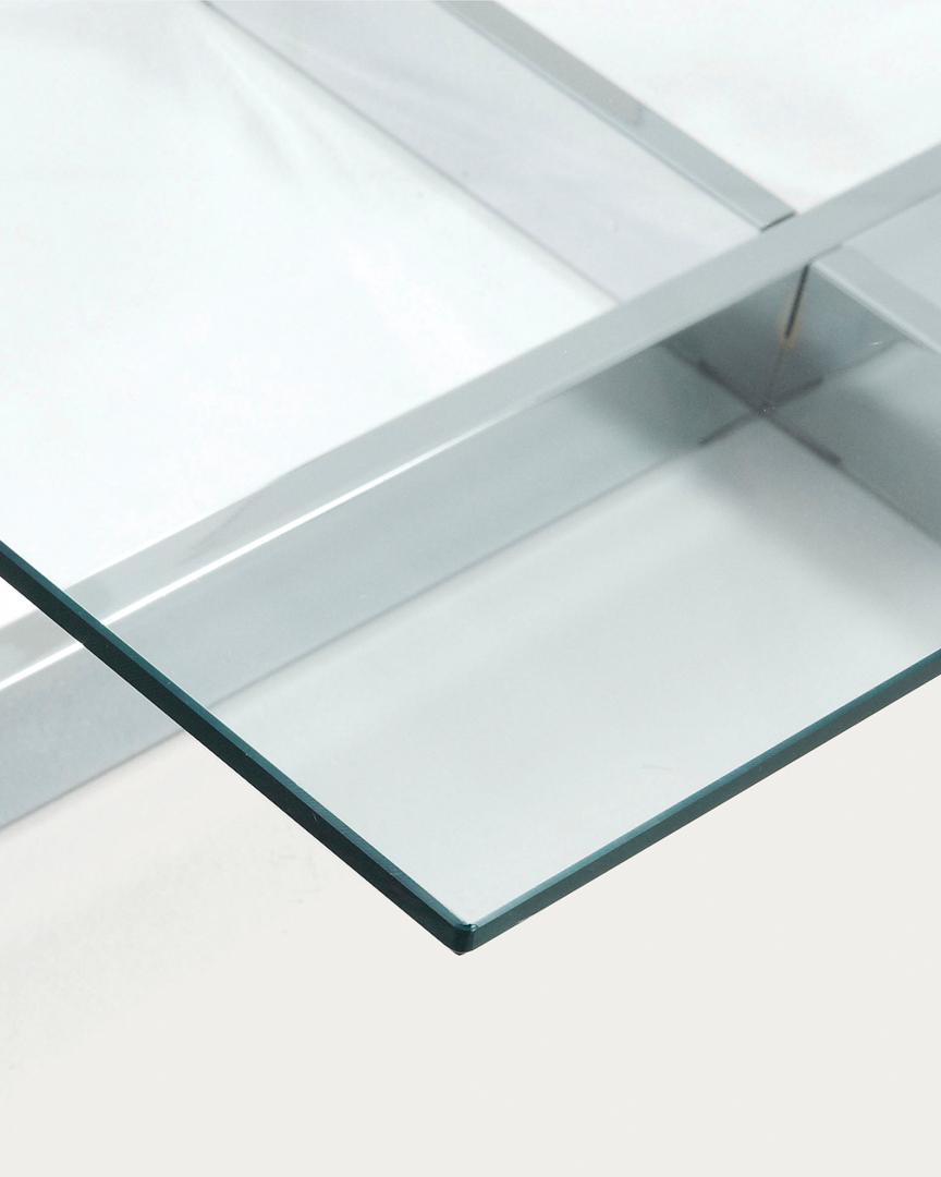 Журнальный столик Plum хромированный от фабрики La Forma – безупречный дизайн для современной городской квартиры. Журнальный столик Plum с хромированными ножками станет отличным дополнением к инерьеру, выполнену в стиле хай-тек, минимализм или фьюжн. Современные материалы и блеск хрома – актуальные детали для городской квартиры мегаполиса. Стол прочный и надежный, а прозрачное стекло визуально не заберет пространство. Журнальный стол прямоугольной формы. Стеклянная столешница имеет толщину 8 мм. Она ударопрочная, полностью прозрачная. Удерживает стекло крестовая опора. Она сделана из хромированной стали и оснащена четырьмя пластиковыми наконечниками для защиты напольного покрытия от повреждений. Металл обеспечивает прочность и надежность при эксплуатации. Поэтому стол способен выдерживать нагрузки до 30 кг. Размеры: длина – 120 см, глубина – 70 см, высота – 38 см. Вес – 20,5 кг. Потребуется сборка. В комплектацию входит крепеж, инструкция. В коллекцию Plum входит аналогичная модель с черными ножками и матовым стеклом.