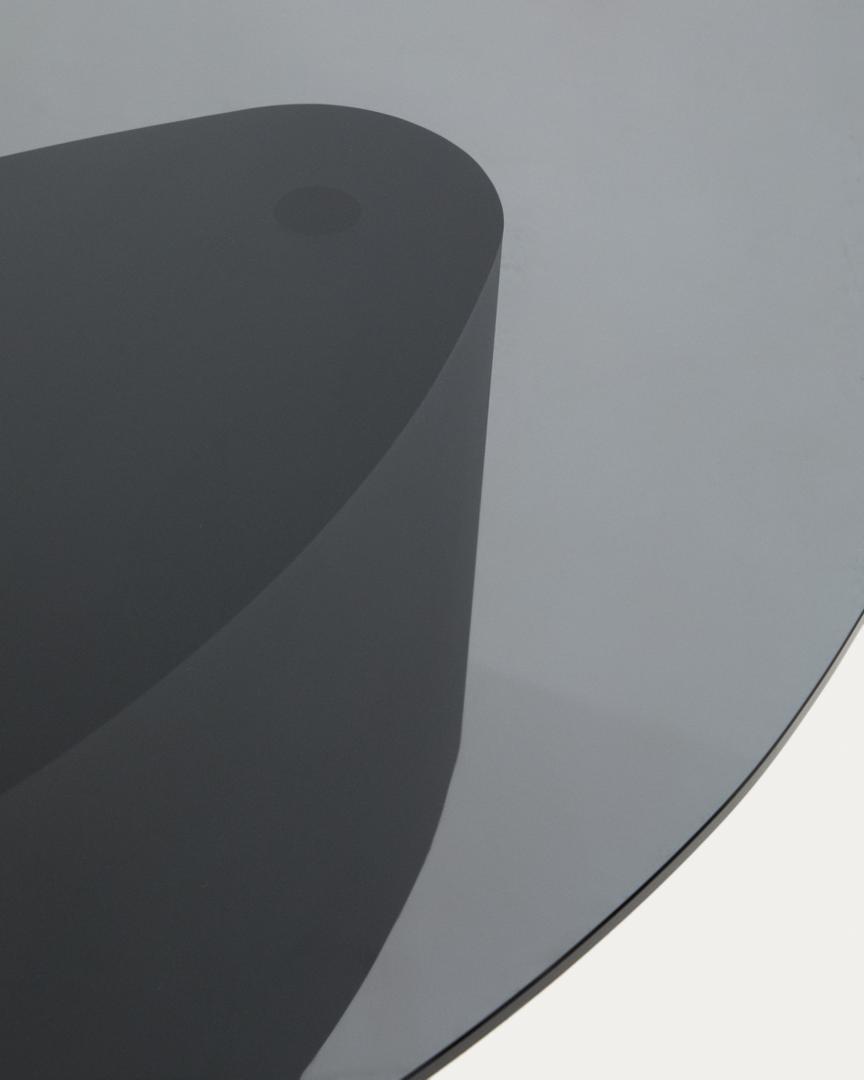 Стол Olir сочетает в себе стальное основание с глянцевой отделкой и столешницу из тонированного закаленного стекла, создавая изделие с органичными линиями. Скульптурная форма основания придает изделию характер и устойчивость, а стекло смягчает общий вид и пропускает свет, создавая ощущение легкости. Стальное основание покрыто порошковой краской, которая защищает поверхность от ударов, царапин и износа. Столешница из тонированного закаленного стекла обеспечивает равномерное распределение цвета и однородную отделку.