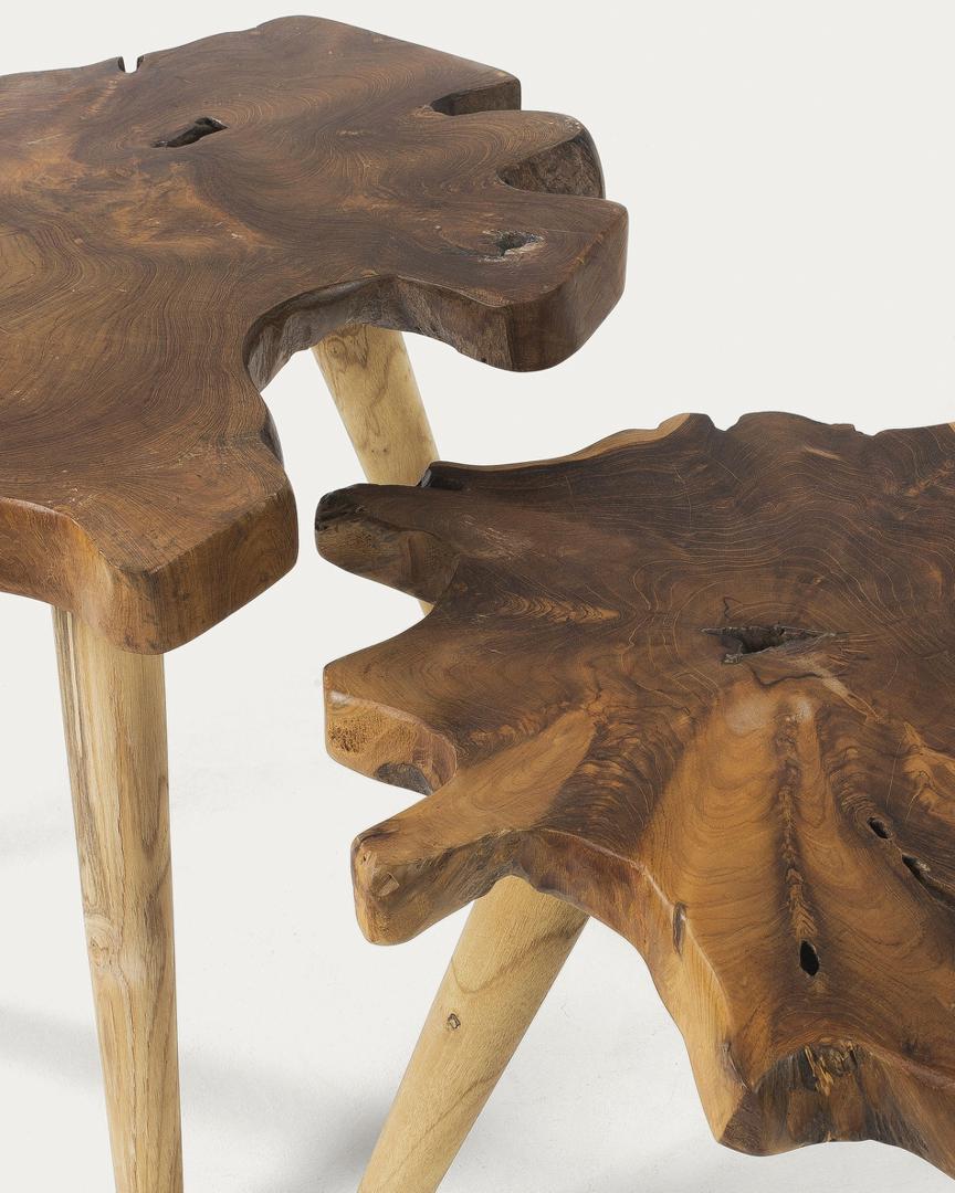 Комплект столиков Harris от фабрики La Forma – природная композиция из тиковой древесины. Комплект столиков Harris – это подарок самой природы, который руки испанских мастеров лишь слегка упаковали. Естественный цвет с уникальными перекатами зерен и вершин и хаотичная форма столешниц делают столики абсолютно эксклюзивными изделиями. К тому же, они обладают удивительной прочностью, что существенно расширяет их функционал. Столики полностью сделаны из тикового дерева. Столешница представляет собой цельный спил толщиной 4,5 см. Он опирается на три конусные ножки, которые равноудалены друг от друга на расстоянии 47 см и 56 см. На каждой есть нейлонова накладка для защиты дерева и напольного покрытия от деформации. Поверхность столиков полностью покрыта лаком, который защищает от негативного воздействия влаги, загрязнений. Максимально допустимая нагрузка на столики – 80 кг. Размеры: ширина – 60 и 56 см, высота – 51 и 43 см. Суммарный вес – 15 кг. Сборка займет 15 минут. Инструкция и крепеж в комплекте.