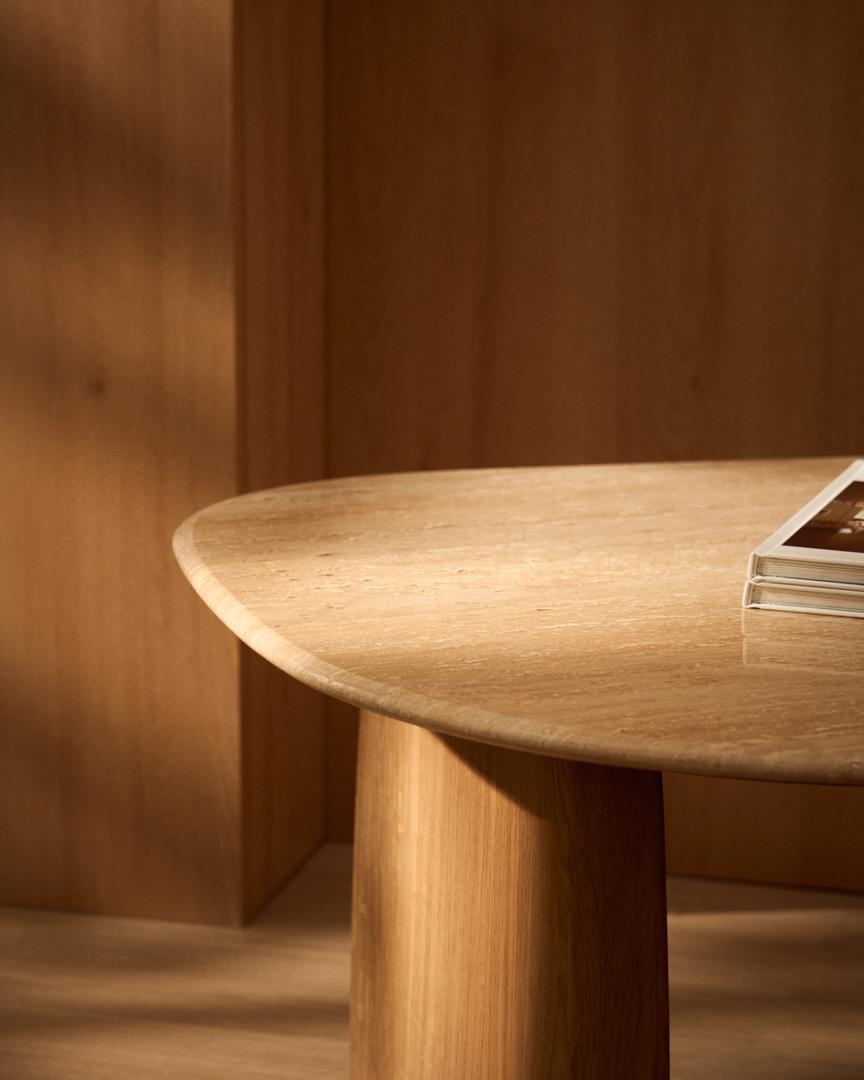 Коллекция Pirita выделяется органичными формами и сбалансированными пропорциями, а столешницы из мрамора или травертина придают изделию солидность и объем. Ножки из массива дуба обеспечивают надежную и четкую конструкцию. Мрамор имеет характерную для этого камня текстуру и оттенки. Каждый стол уникален и отражает особенности материала. Регулируемые ножки позволяют компенсировать небольшие неровности пола и обеспечивают достаточную устойчивость при ежедневном использовании.