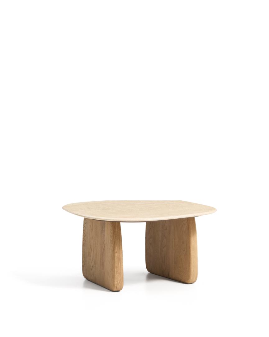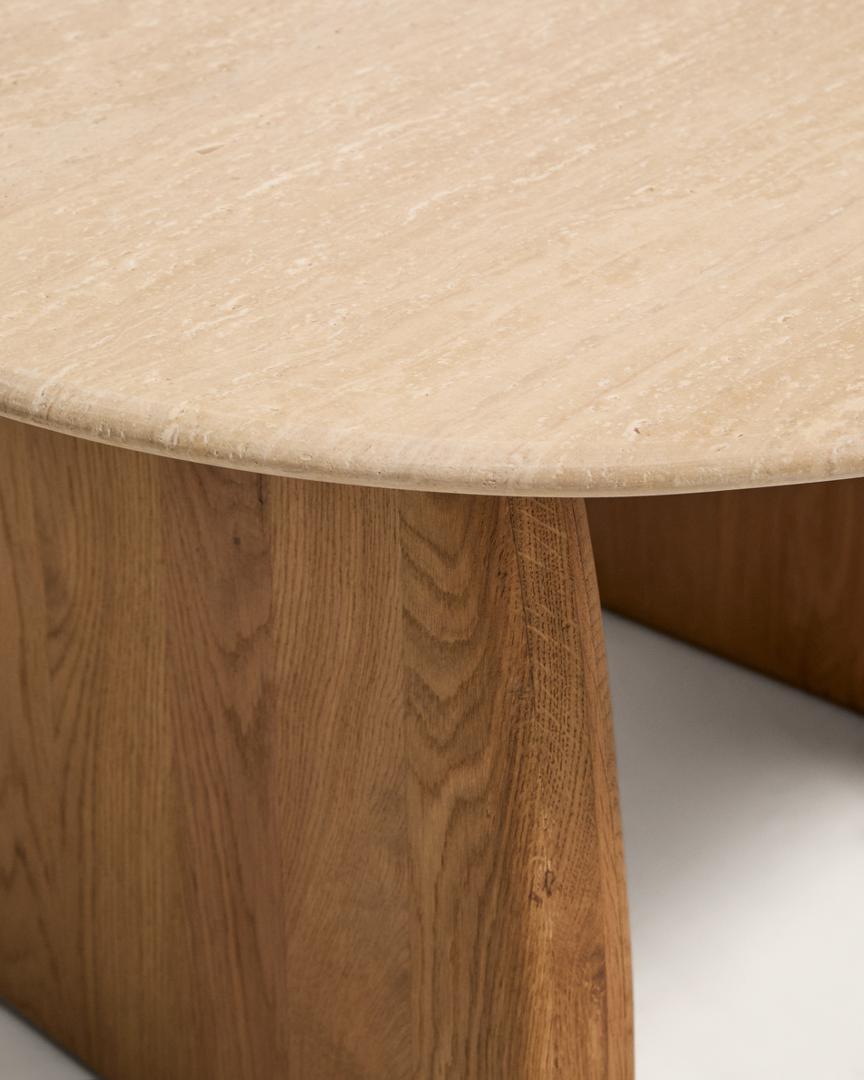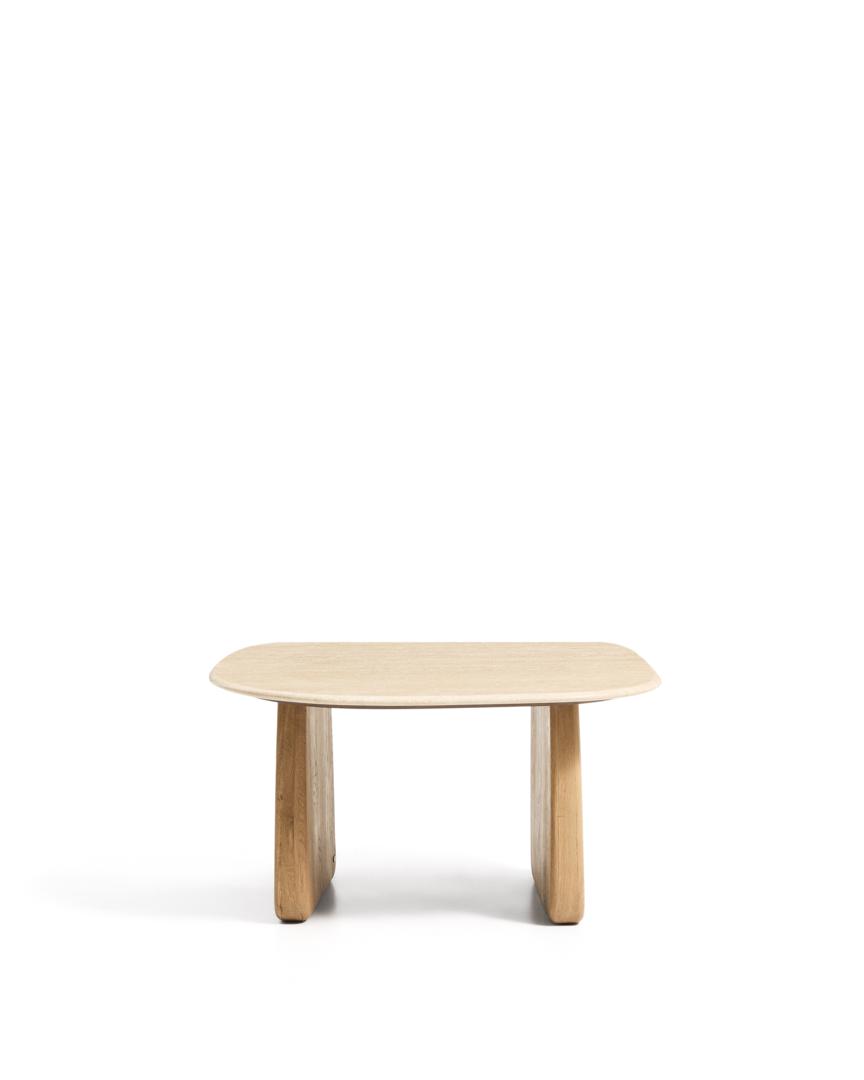 Столик La Forma (ех Julia Grup) Приставной столик Pirita из бежевого травертина с ножками из дуба натурального цвета, 71 x 70 см арт. 503842