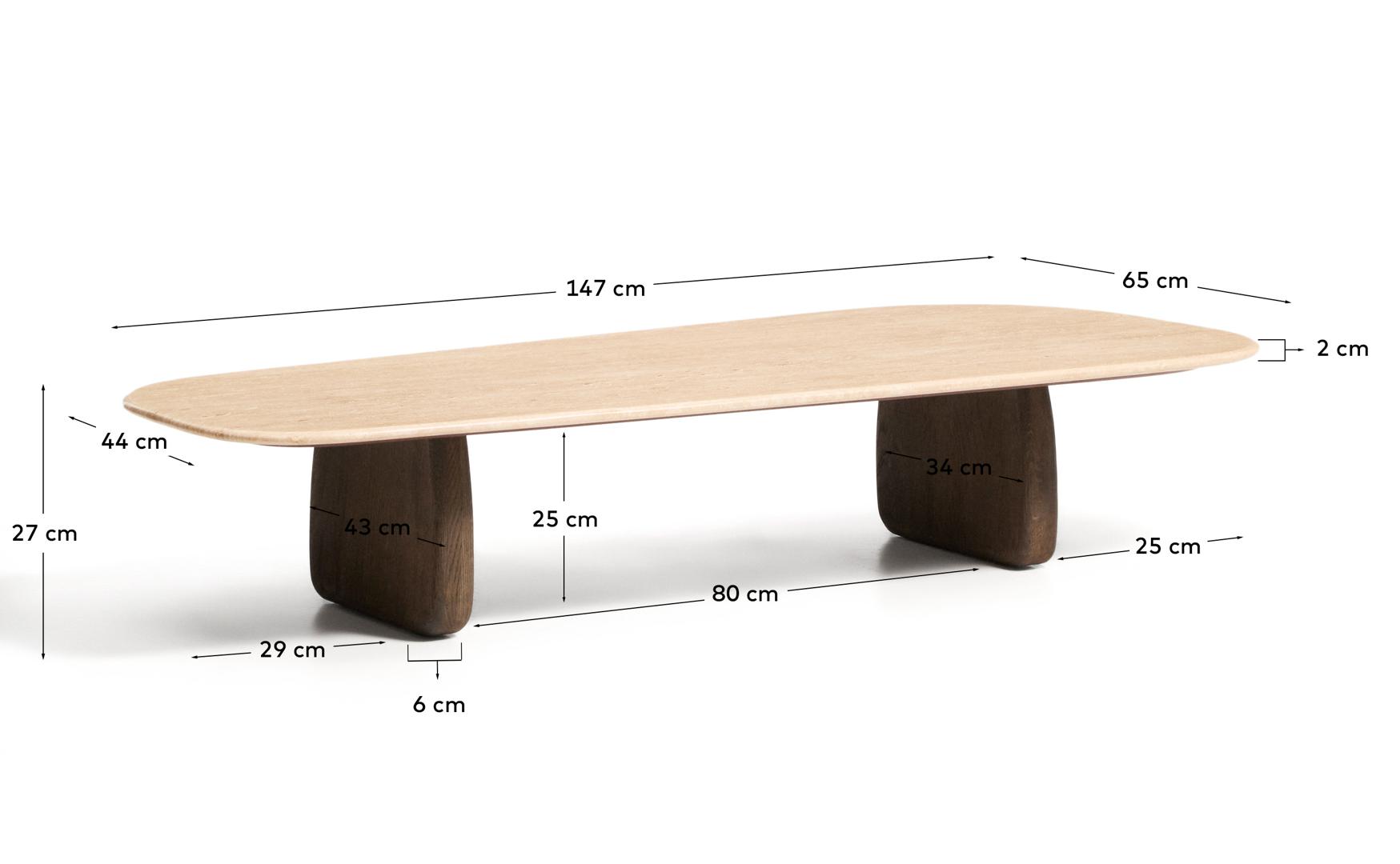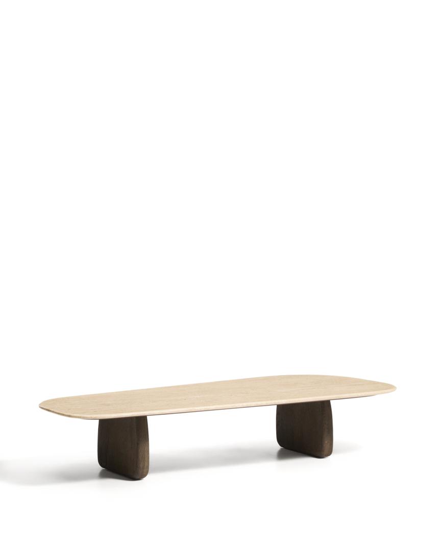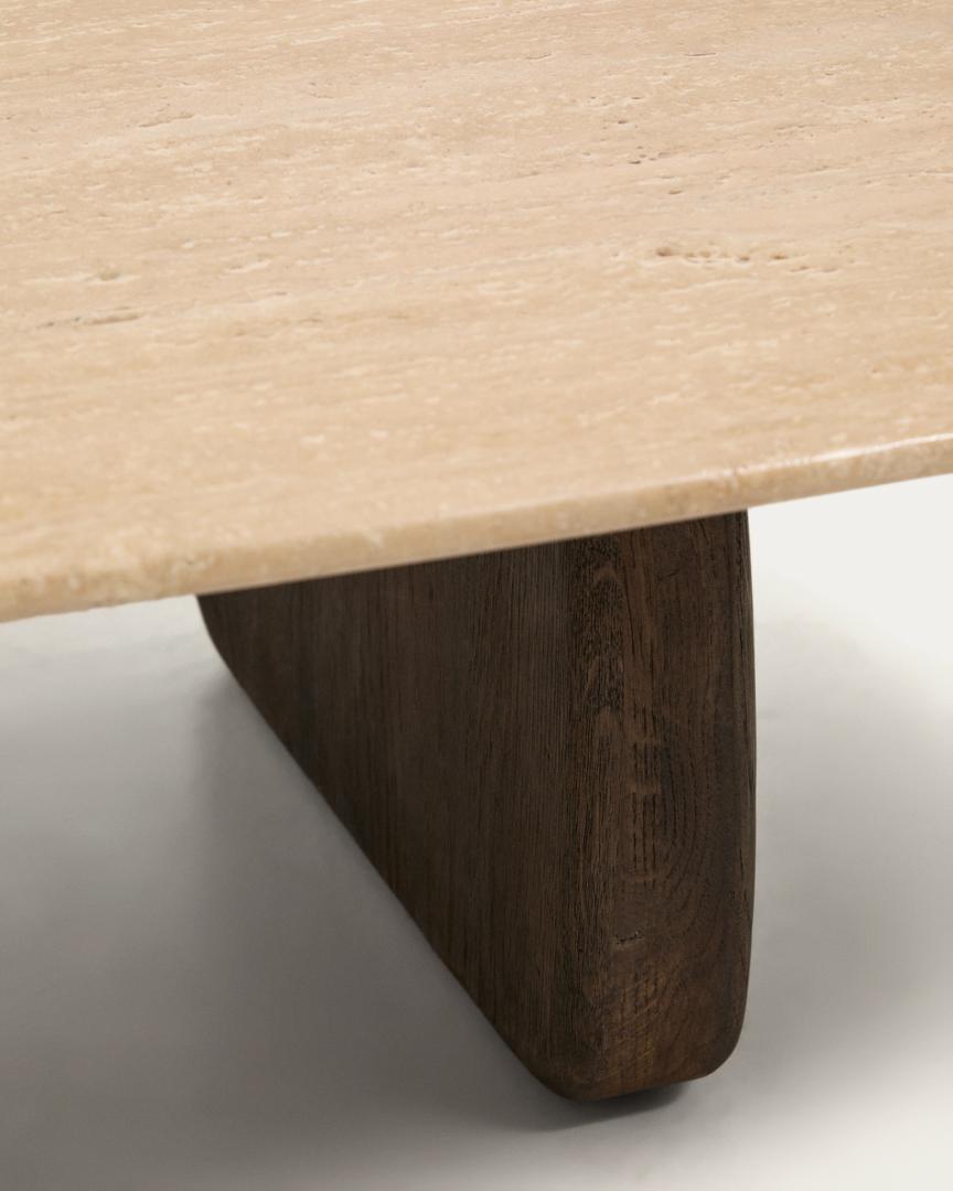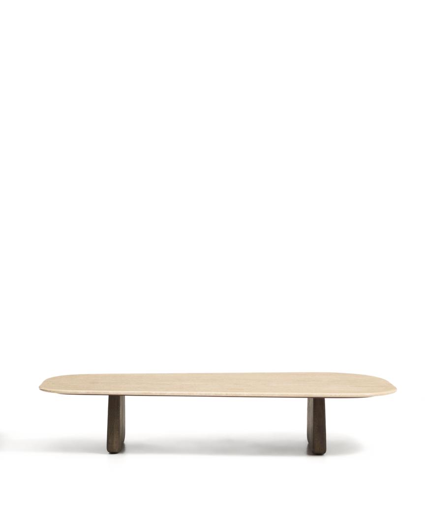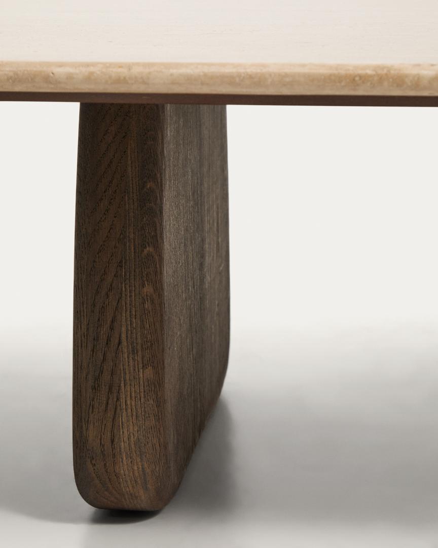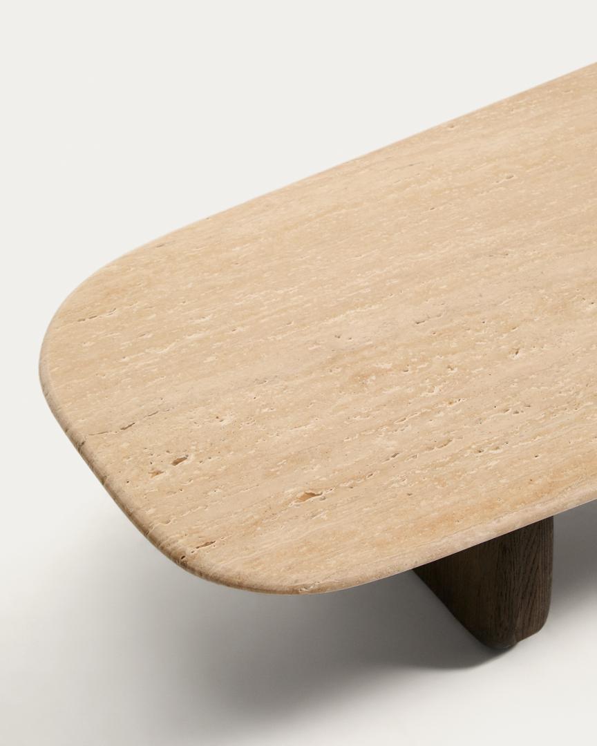 Столик La Forma (ех Julia Grup) Журнальный столик Pirita из бежевого травертина с ножками из дуба с темной отделкой, 147 x 65 см арт. 503840