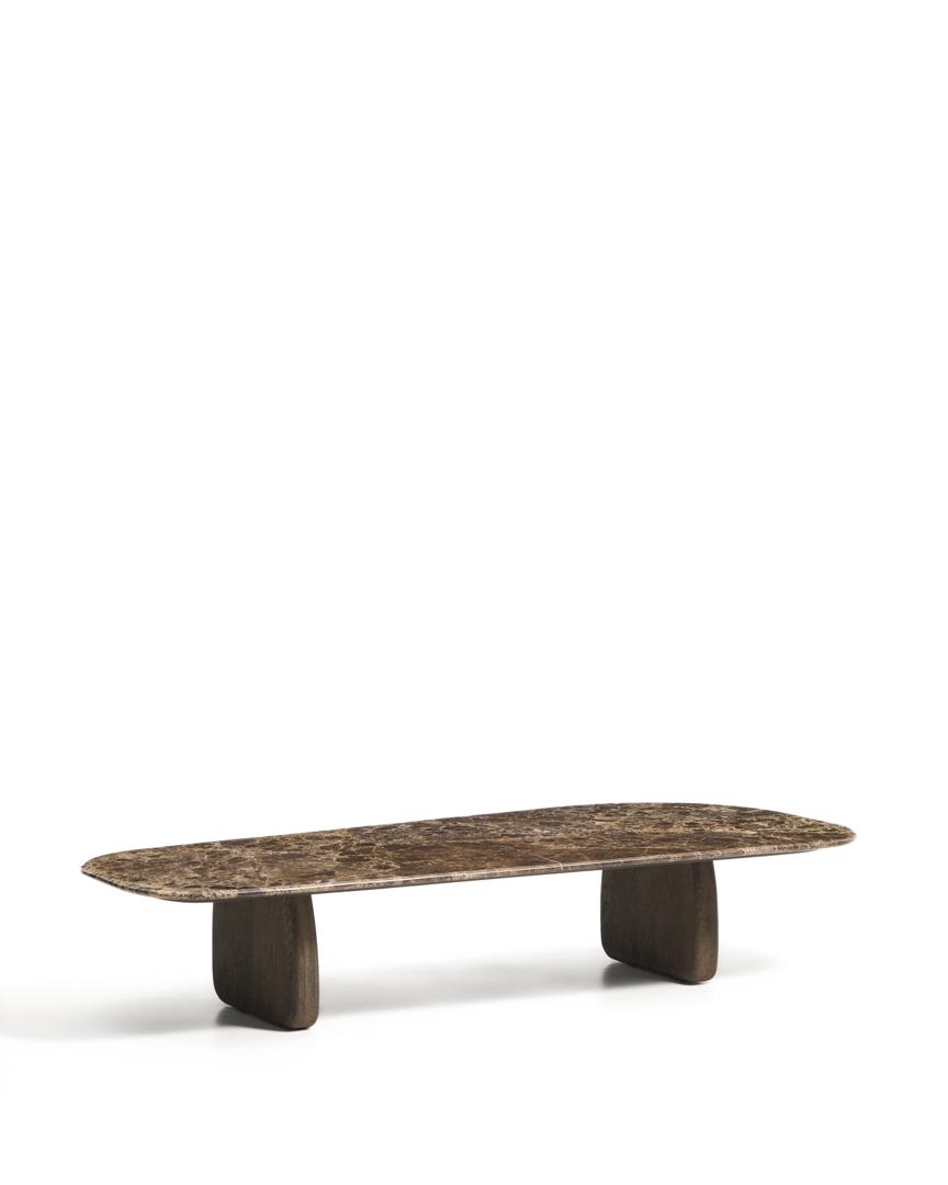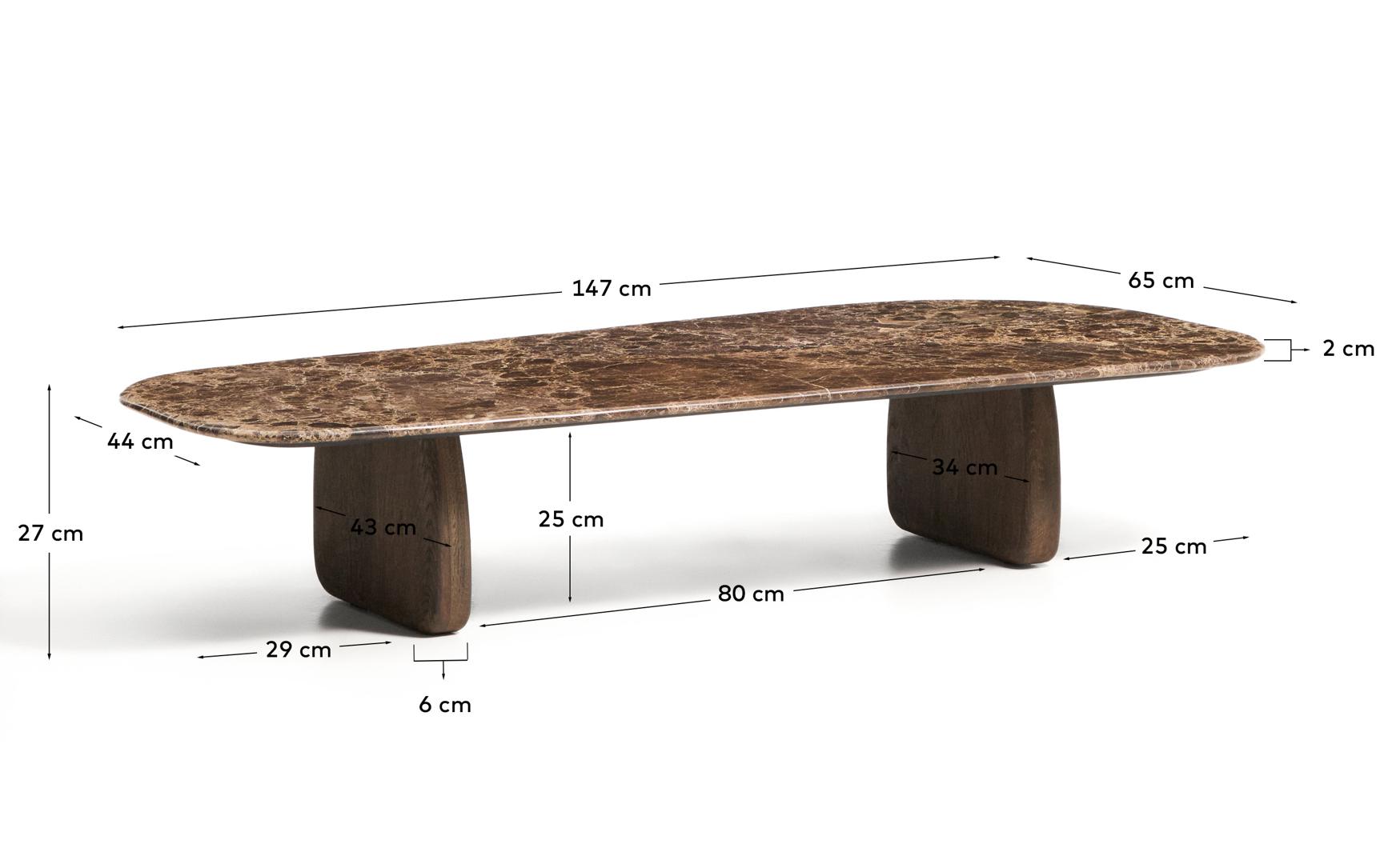 Столик La Forma (ех Julia Grup) Журнальный столик Pirita из коричневого мрамора с ножками из дуба с темной отделкой, 147 x 65 см арт. 503868