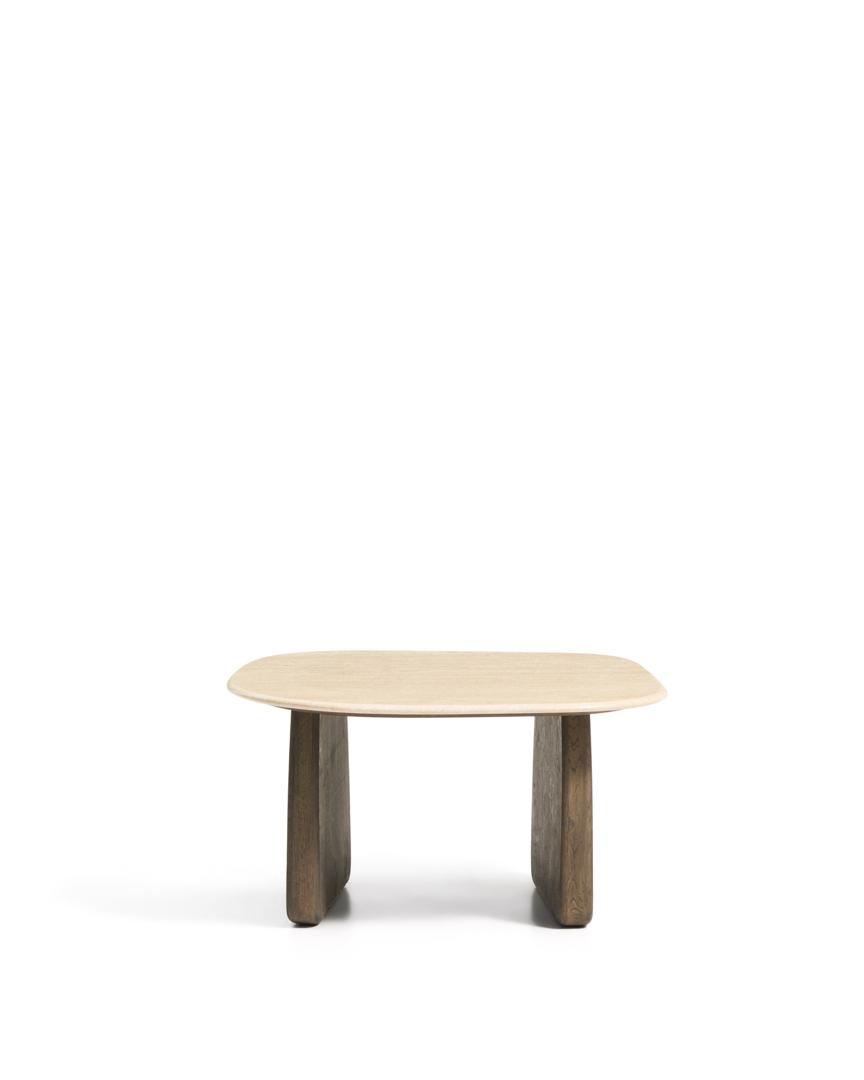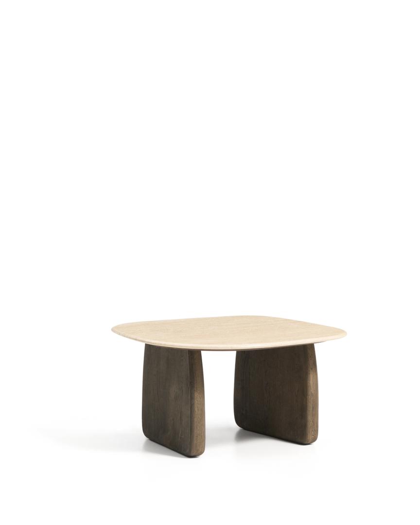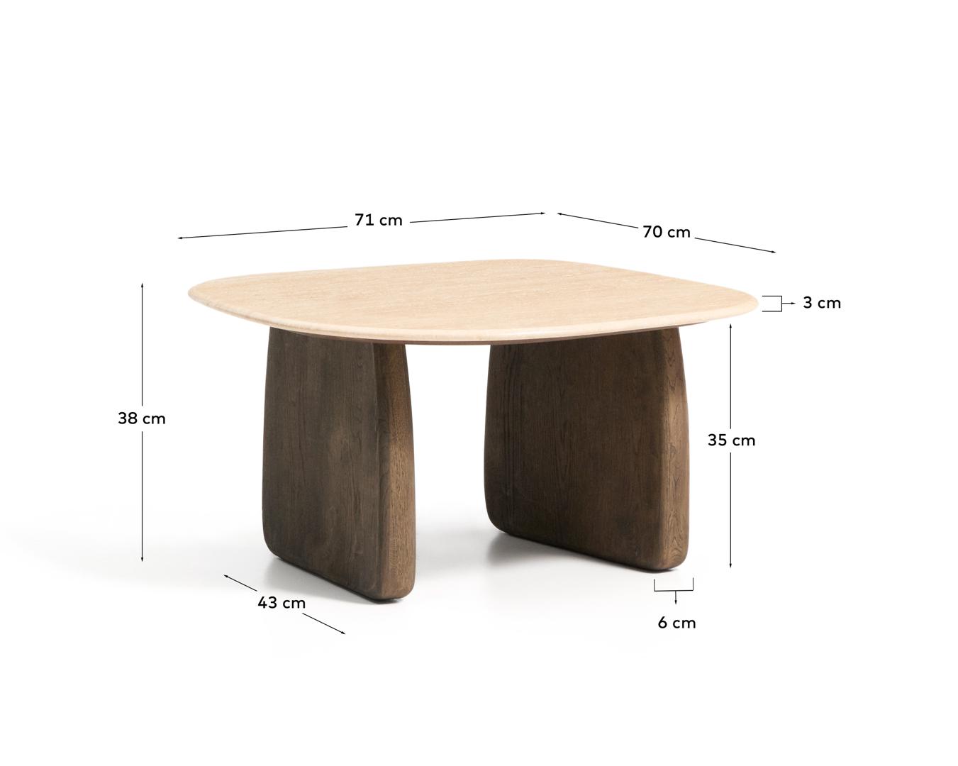 Столик La Forma (ех Julia Grup) Приставной столик Pirita из бежевого травертина с ножками из дуба с темной отделкой, 71 x 70 см арт. 503872