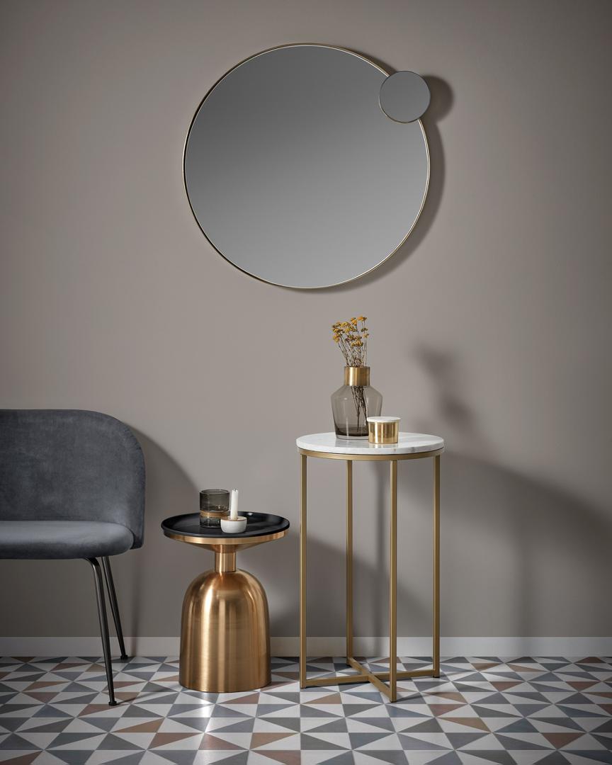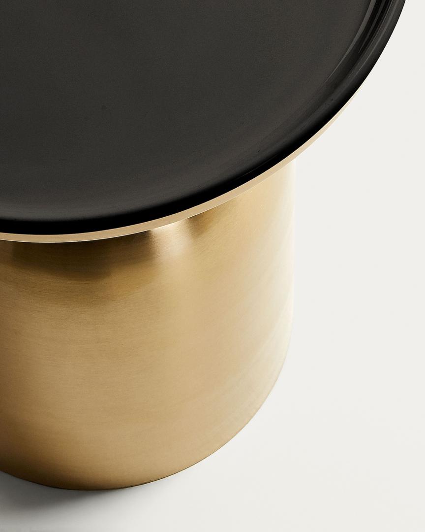Столик приставной Physic от фабрики La Forma – эксклюзивный дизайн будет всегда рядом. Приставной столик Physic будоражит воображение своей оригинальной формой. Словно перевернутый бокал, он демонстрирует свои эффектные позолоченные боковины. Черная столешница – продуманный дизайнерский ход, чтобы добавить яркости и контраста. Столик полностью выполнен из металла. Стойка имеет гальваническое латунное покрытие, а столешница высотой 4 см покрыта черной глянцевой краской. Диаметр стойки в основании составляет 27,5 см, что обеспечивает хорошую устойчивость на любом напольном покрытии. А для его защиты от повреждений, предусмотрены войлочные подушки. Труба, соединяющая цилиндрическую часть со столешницей, имеет диаметр 8 см. Максимально допустимая нагрузка на столик не должна превышать 5 кг. Размеры: ширина – 38 см, высота – 45 см. Вес – 4,9 см. Сборка не требуется.