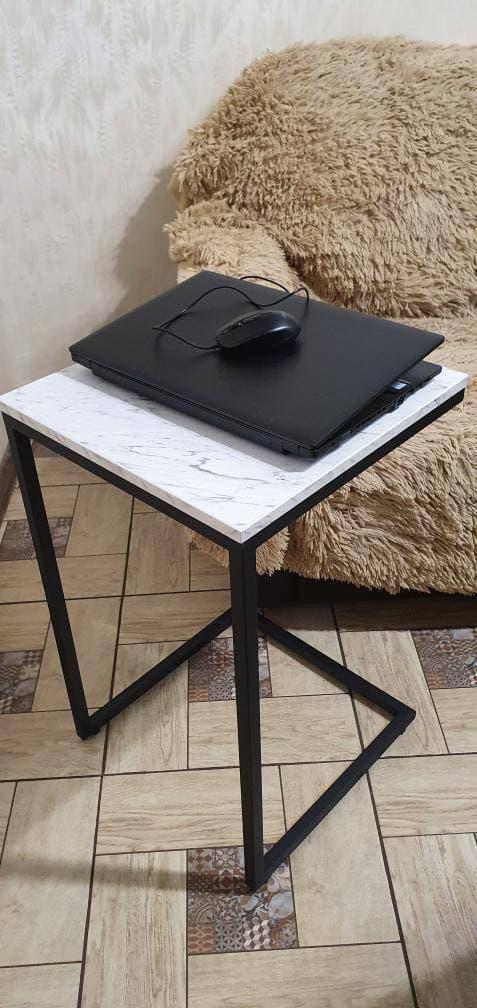 Столик LoftyHome Стол приставной Мальборк Мрамор Сноу лофт арт. 1627607