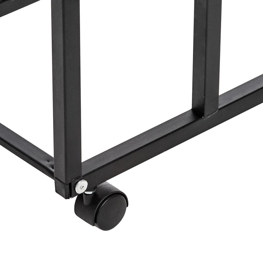 Столик на колесиках Уно станет удобным и практичным элементом эргономичной меблировки. Передвижной столик оснащен удобными пластиковыми колесами, благодаря чему стол журнальный имеет высокую маневренность и свободно перемещается. Подкатной столик Уно подходит для жилого помещения и офиса, его можно использовать как приставной столик для завтрака, мини этажерку на колесиках, компактный стол письменный для ноутбука или кухонный стол для малогабаритной кухни. Ножки журнального столика из металла трубы окрашены в темный цвет, а столешница изготовлена из ЛДСП 16 мм. Стол на колесиках имеет оригинальную и простую конструкцию, что делает его универсальным дополнением маленького рабочего пространства и зоны отдыха.