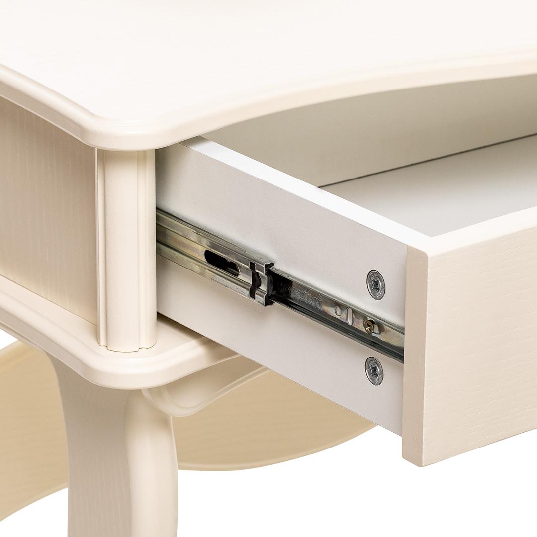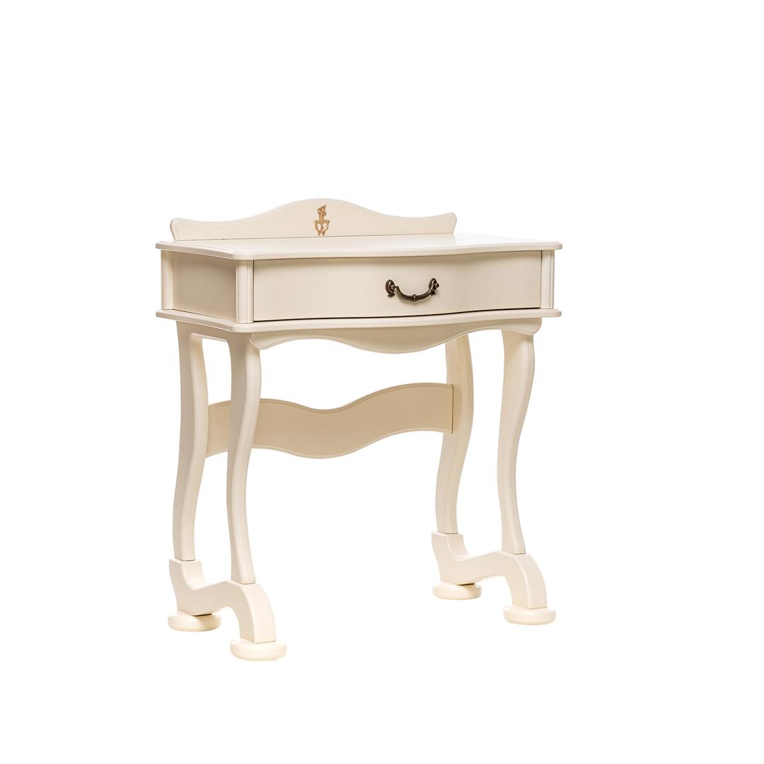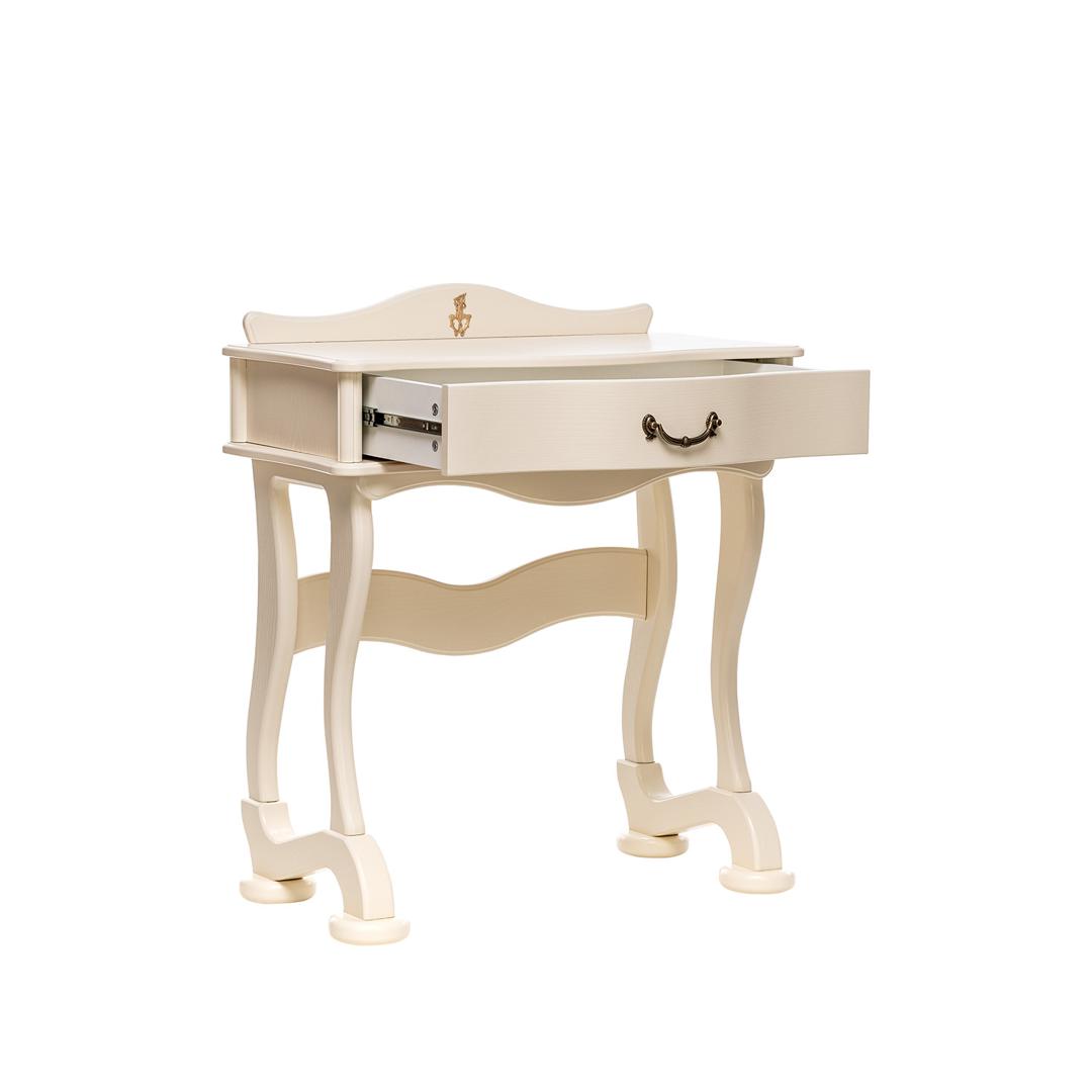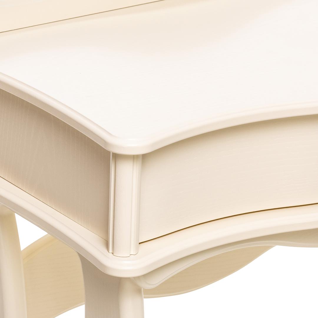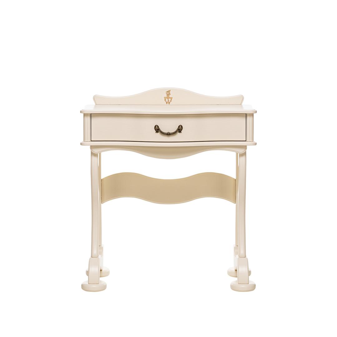 Изящный стильный туалетный столик. Плавность линий подчеркнут изысканность спальни. Большой выдвижной ящик позволит разместить необходимые предметы и аксессуары. Столик в сочетании с комодом, банкеткой и зеркалом составит отличный гарнитур.