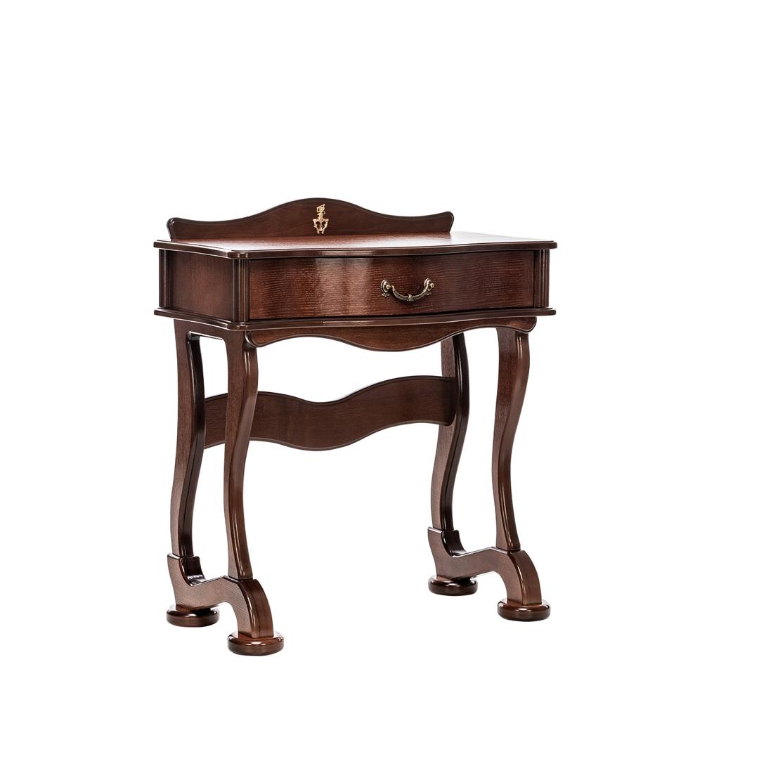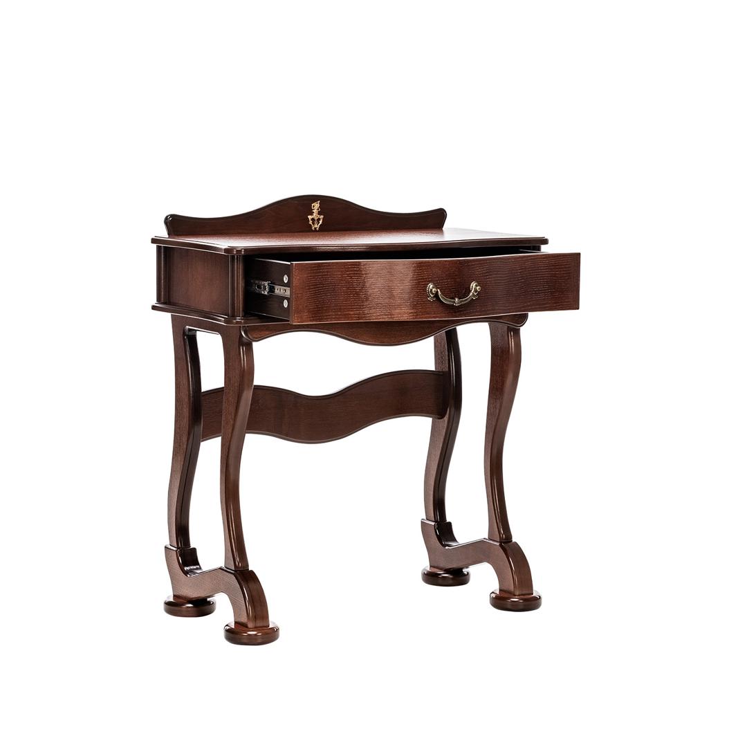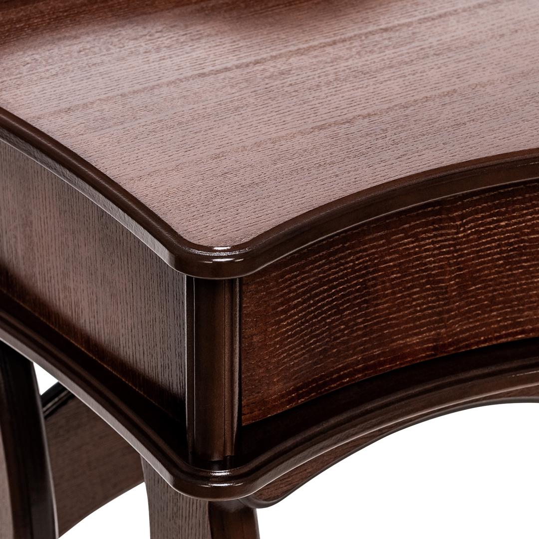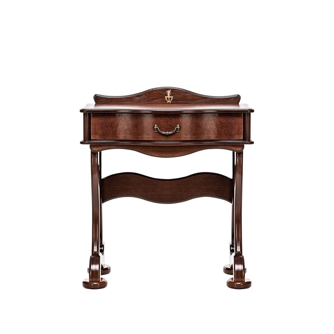 Изящный стильный туалетный столик. Плавность линий подчеркнут изысканность спальни. Большой выдвижной ящик позволит разместить необходимые предметы и аксессуары. Столик в сочетании с комодом, банкеткой и зеркалом составит отличный гарнитур.