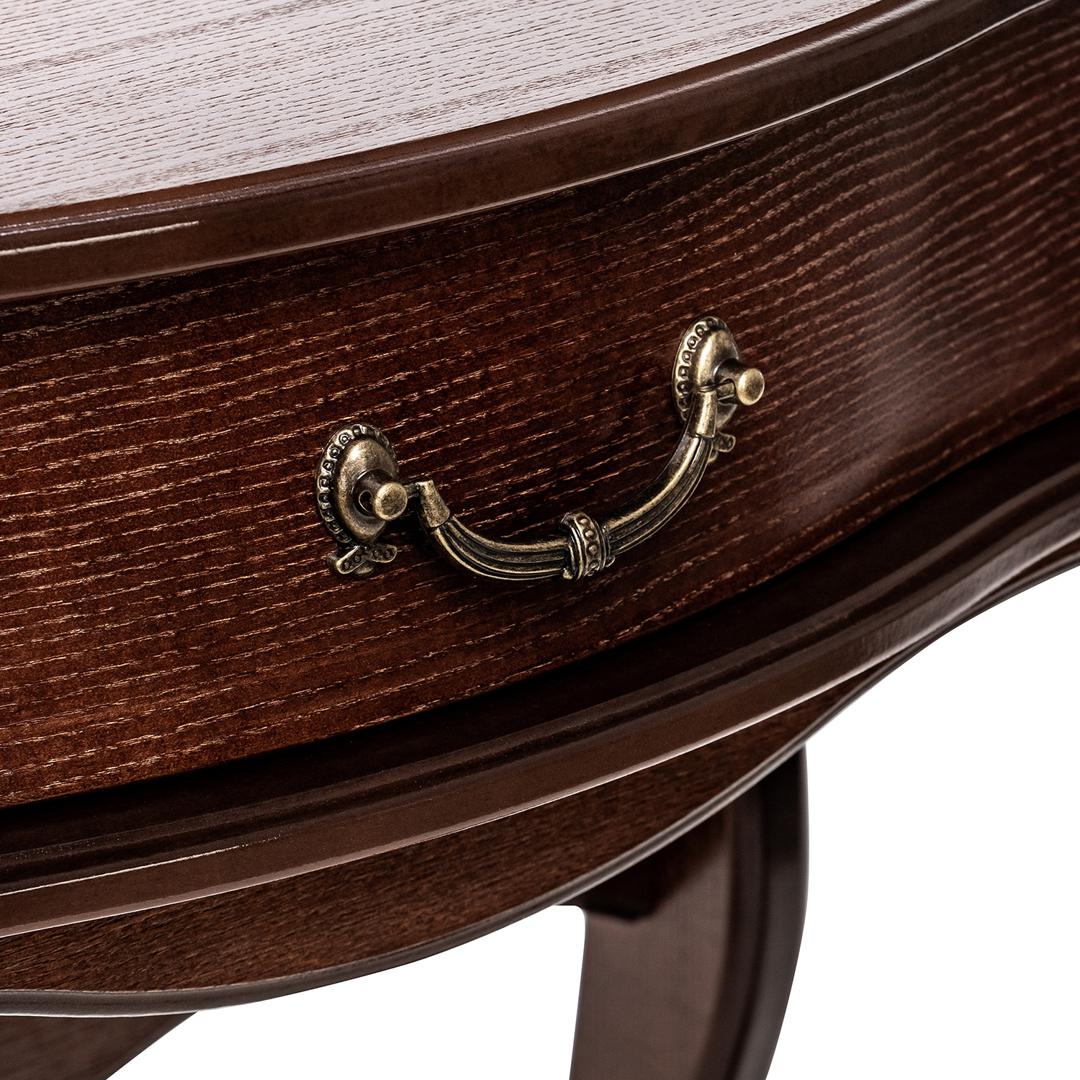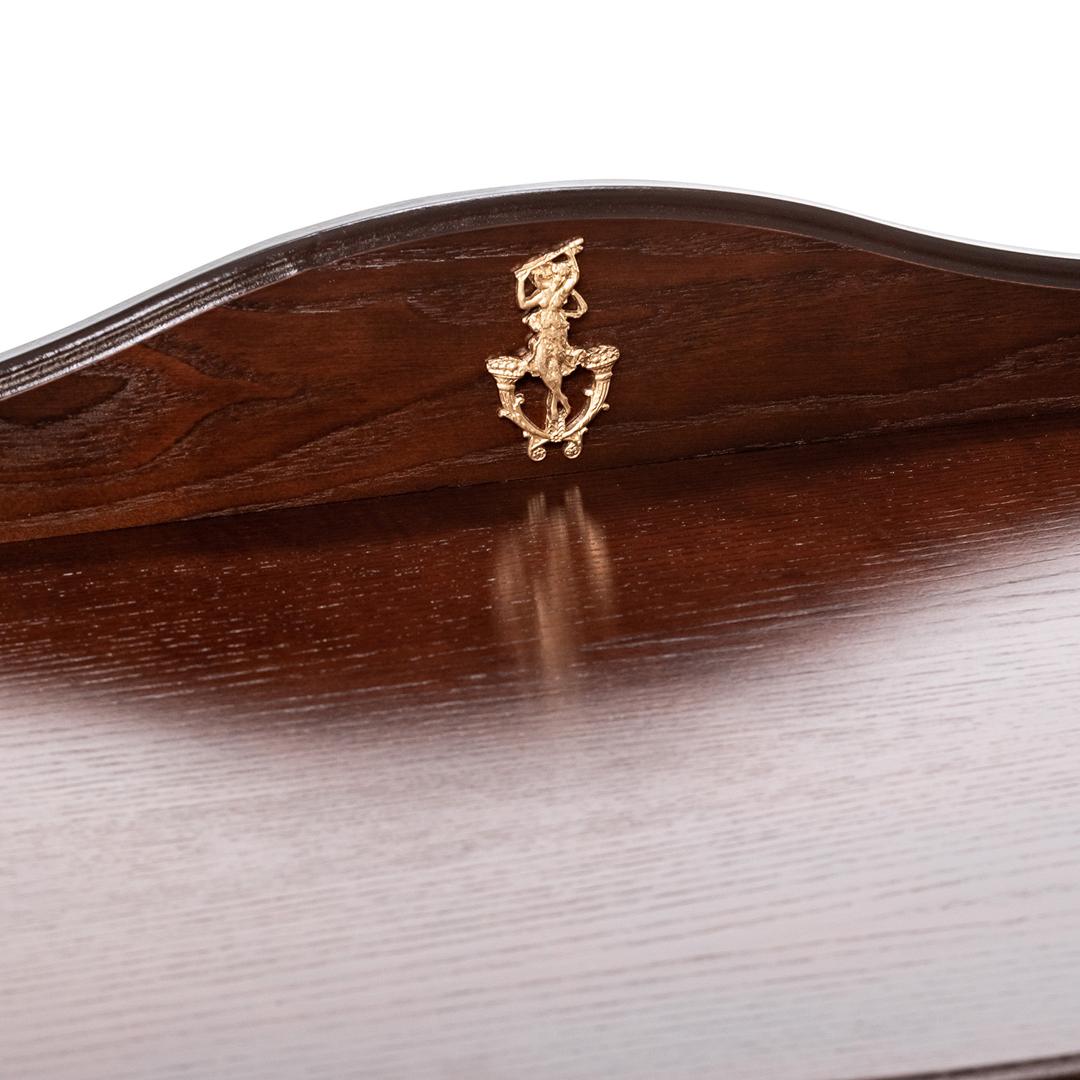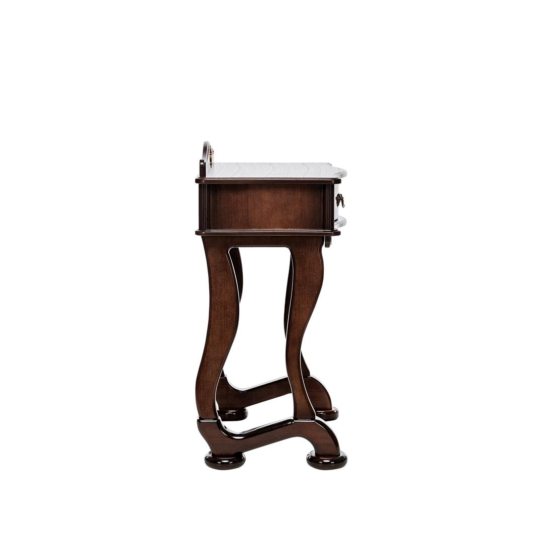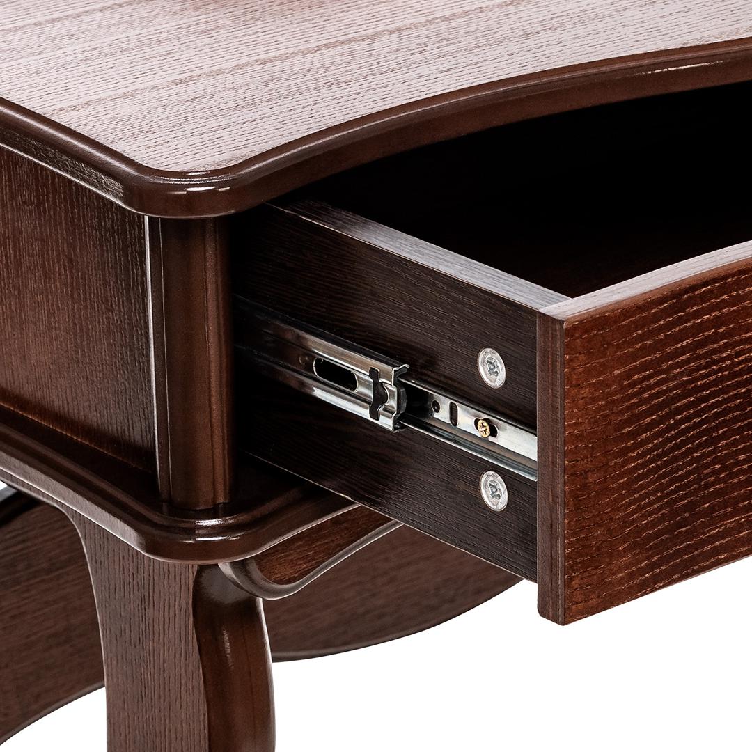 Изящный стильный туалетный столик. Плавность линий подчеркнут изысканность спальни. Большой выдвижной ящик позволит разместить необходимые предметы и аксессуары. Столик в сочетании с комодом, банкеткой и зеркалом составит отличный гарнитур.