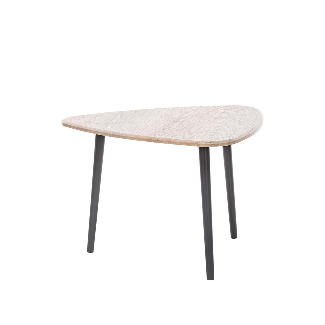 Журнальный столик – это не только самый красивый предмет интерьера, но и достаточно функциональный и универсальный. Как и любая другая мебель, журнальные столики испытывают на себе влияние модных тенденций. Данная модель журнального стола приковывает внимание прежде всего своей цветовой гаммой и оригинальной формой. Переход от традиционных цветовых решений обусловлен возможностью добавить нотку позитива и ярких красок в интерьер. Продукция представлена в трёх цветовых решениях, что дает возможность подобрать наиболее подходящий к интерьеру цвет, будь то классический дуб сонома или яркий белый. Столешница изготовлена из материала МДФ, а ножки из массива дерева. Для более бережной эксплуатации они дополнены мягкими фетровыми опорами. Столик имеет компактные размеры: длина 700 мм, ширина 730 мм, высота 480 мм. Продукция поставляется в разобранном виде, упакованная в гофрокартон. В комплект входит вся необходимая фурнитура и удобная инструкция для сборки.