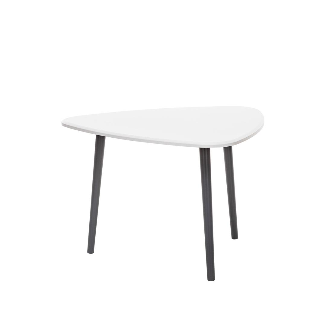 Журнальный столик – это не только самый красивый предмет интерьера, но и достаточно функциональный и универсальный. Как и любая другая мебель, журнальные столики испытывают на себе влияние модных тенденций. Данная модель журнального стола приковывает внимание прежде всего своей цветовой гаммой и оригинальной формой. Переход от традиционных цветовых решений обусловлен возможностью добавить нотку позитива и ярких красок в интерьер. Продукция представлена в трёх цветовых решениях, что дает возможность подобрать наиболее подходящий к интерьеру цвет, будь то классический дуб сонома или яркий белый. Столешница изготовлена из материала МДФ, а ножки из массива дерева. Для более бережной эксплуатации они дополнены мягкими фетровыми опорами. Столик имеет компактные размеры: длина 700 мм, ширина 730 мм, высота 480 мм. Продукция поставляется в разобранном виде, упакованная в гофрокартон. В комплект входит вся необходимая фурнитура и удобная инструкция для сборки.