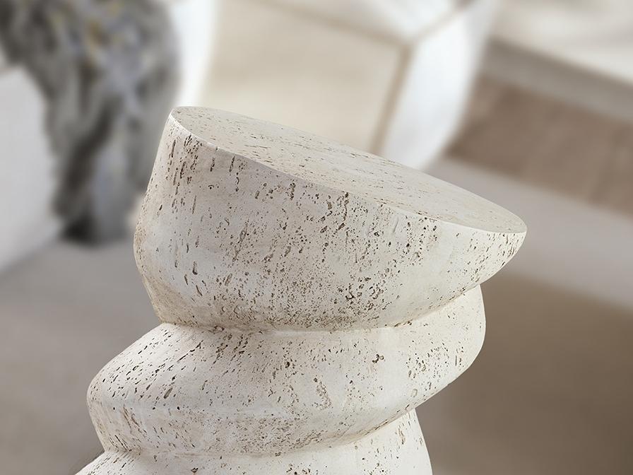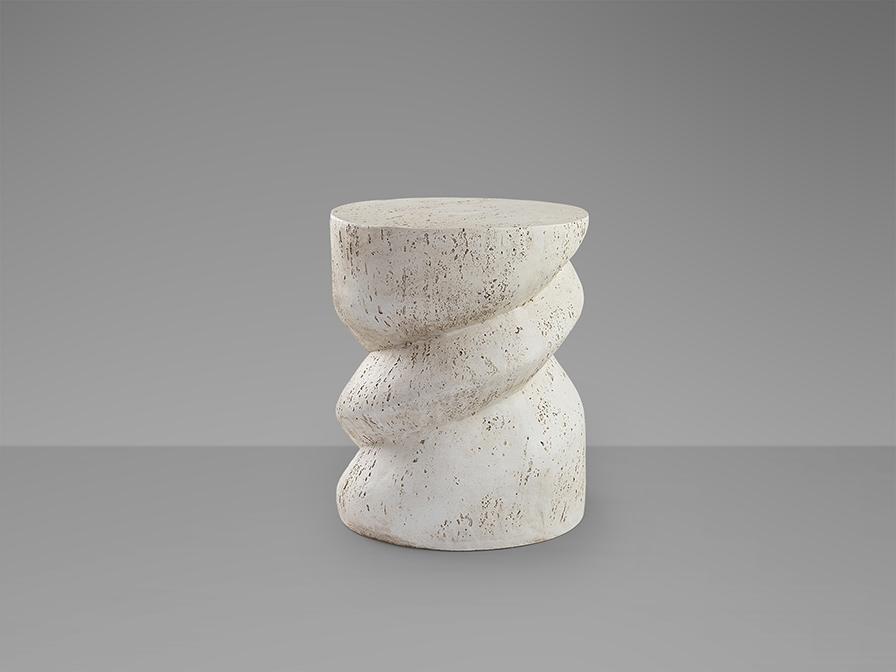 Приставной столик из OMG (формованный магний), текстура цемента, матовая белая отделка.