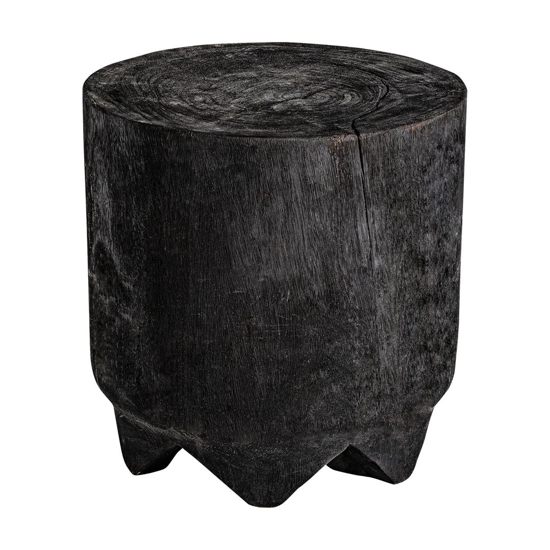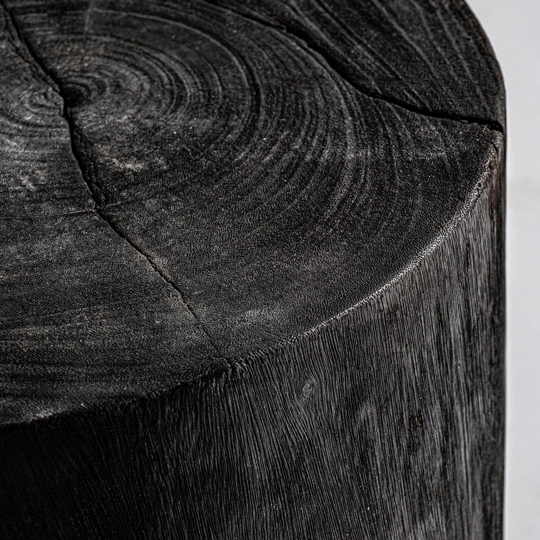 Приставной столик KEPOI, черный потертый цвет, этнический стиль. Изготовлен из обожженного дерева суар.