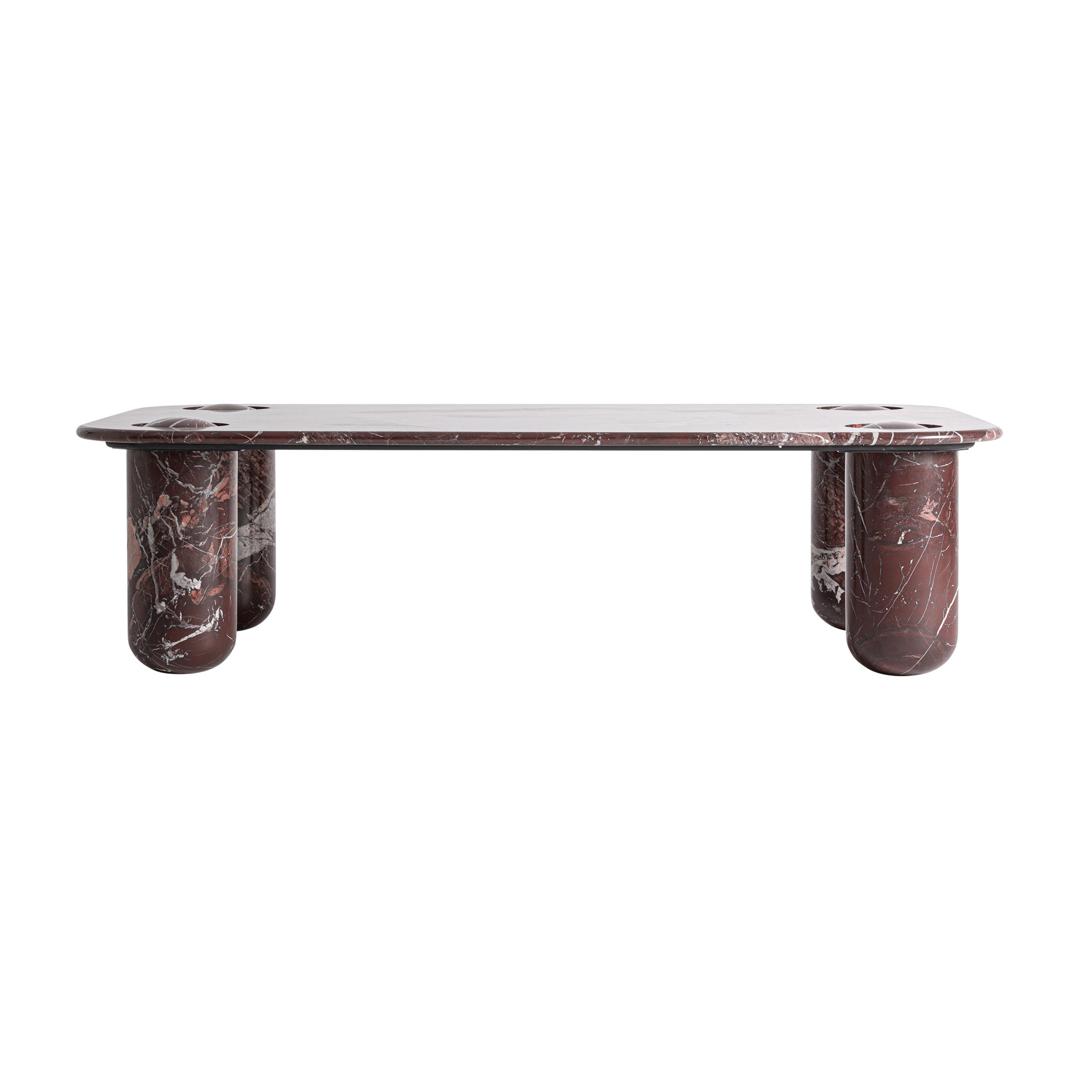 Журнальный столик Bourg в современном стиле, изготовлен из бордового мрамора с глянцевой отделкой. Изделие разборное. Ширина: 150 см, Глубина: 90 см, Высота: 40 см