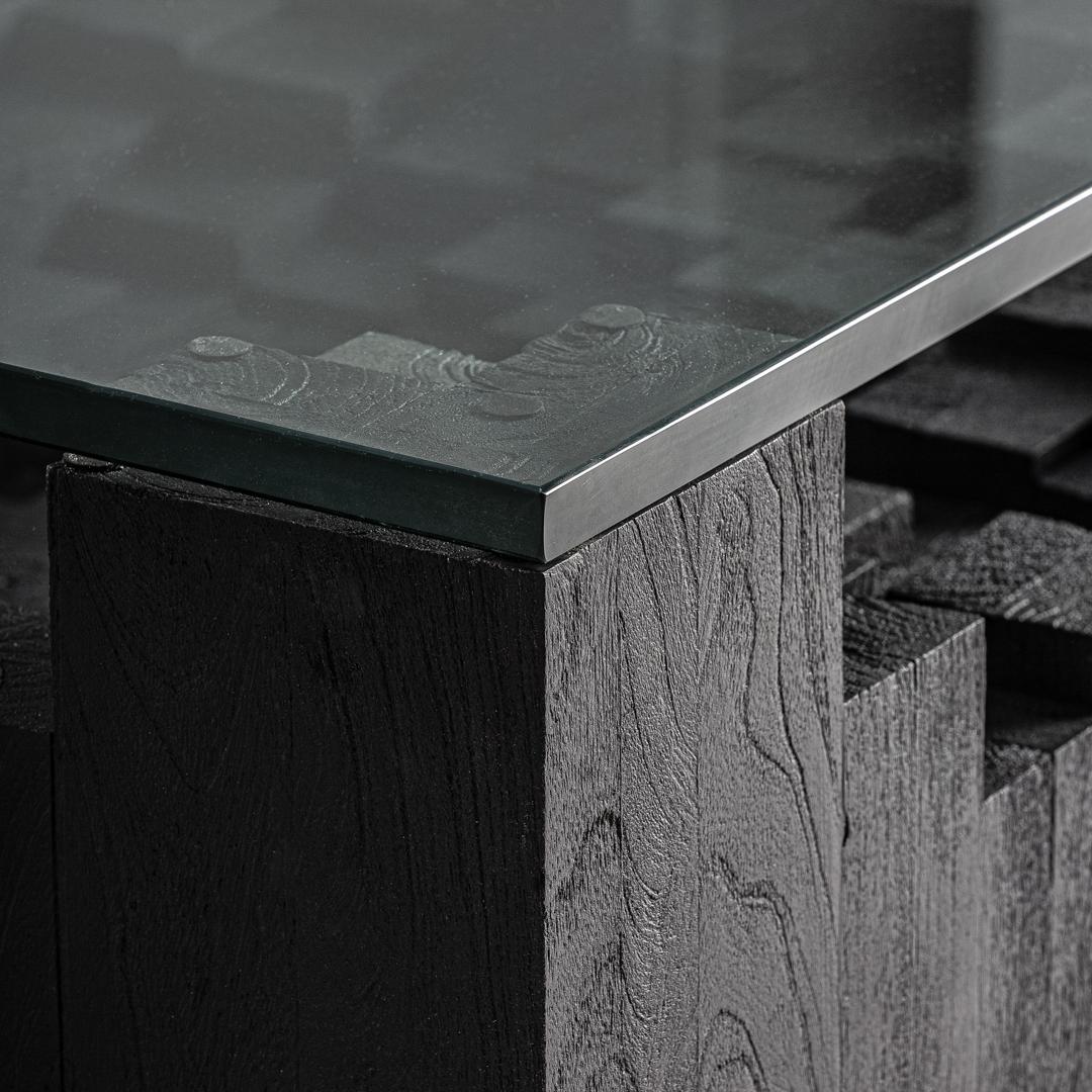 Журнальный столик PÈTRIA от VICALDESIGN представляет собой поэтический диалог камня и стекла. Его геометрическое основание, вдохновлённое базальтовыми образованиями, поддерживает стеклянную столешницу, сквозь которую просматривается внутренняя структура, словно слои геологической истории. Контраст между прочностью минерала и сияющей прозрачностью создаёт баланс и современную элегантность. Ширина: 98 см, Глубина: 98 см, Высота: 32 см