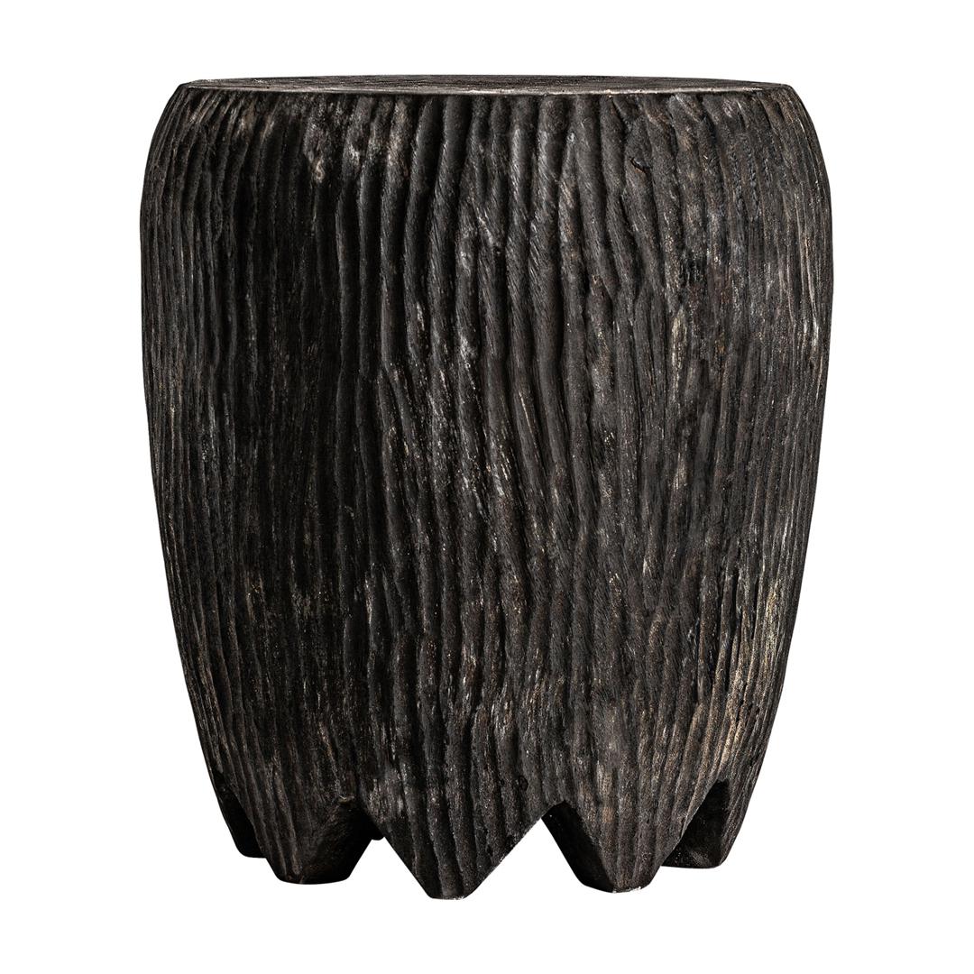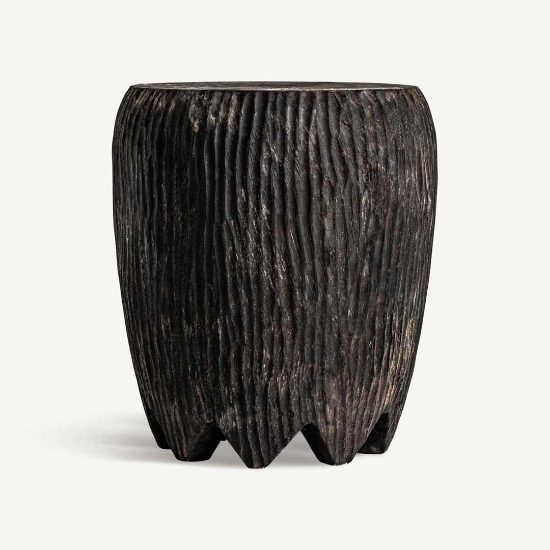 Стол со скульптурным характером, изготовленный из чёрного суара. Состаренная отделка и органичная форма придают ему неповторимую индивидуальность. Ширина: 45 см, Глубина: 45 см, Высота: 48 см