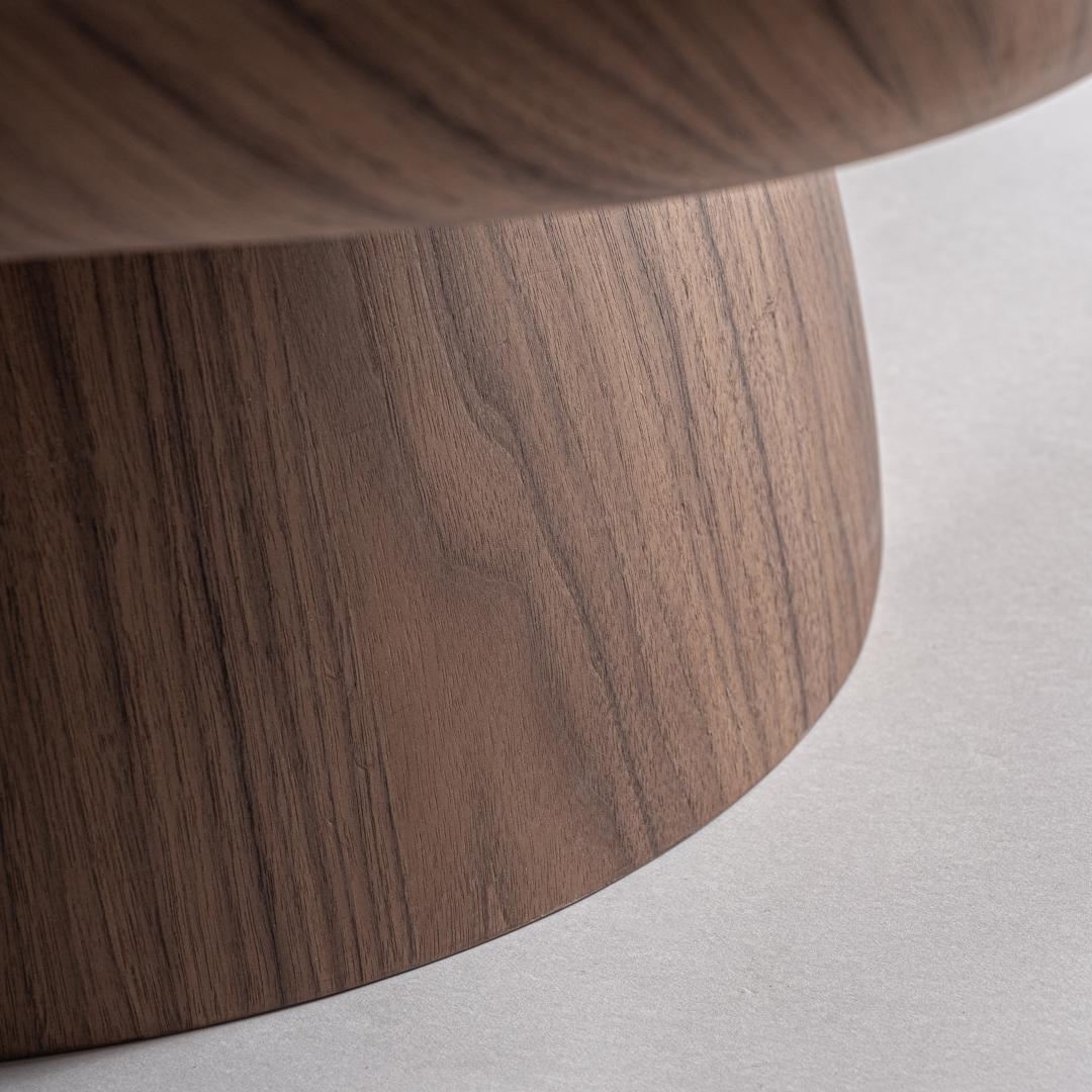 Кофейный столик, изготовленный из орехового шпона коричневого цвета в сочетании со стекловолокном. Ширина: 100 см, Глубина: 60 см, Высота: 30 см