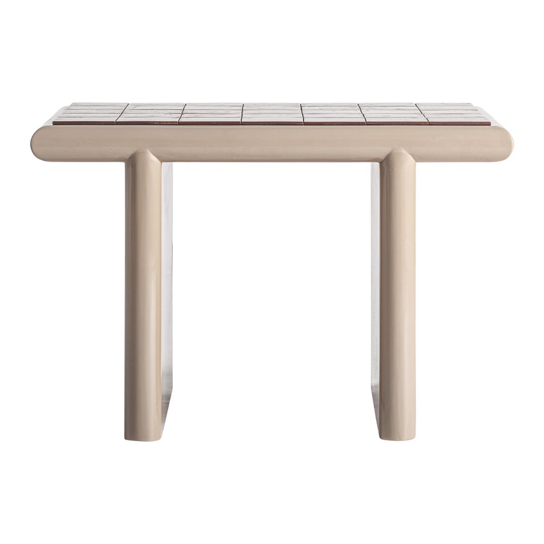 Журнальный столик из бежевого МДФ в сочетании с коричневой керамикой. Ширина: 76 см, Глубина: 55 см, Высота: 50 см