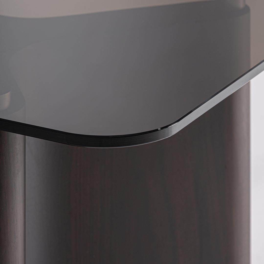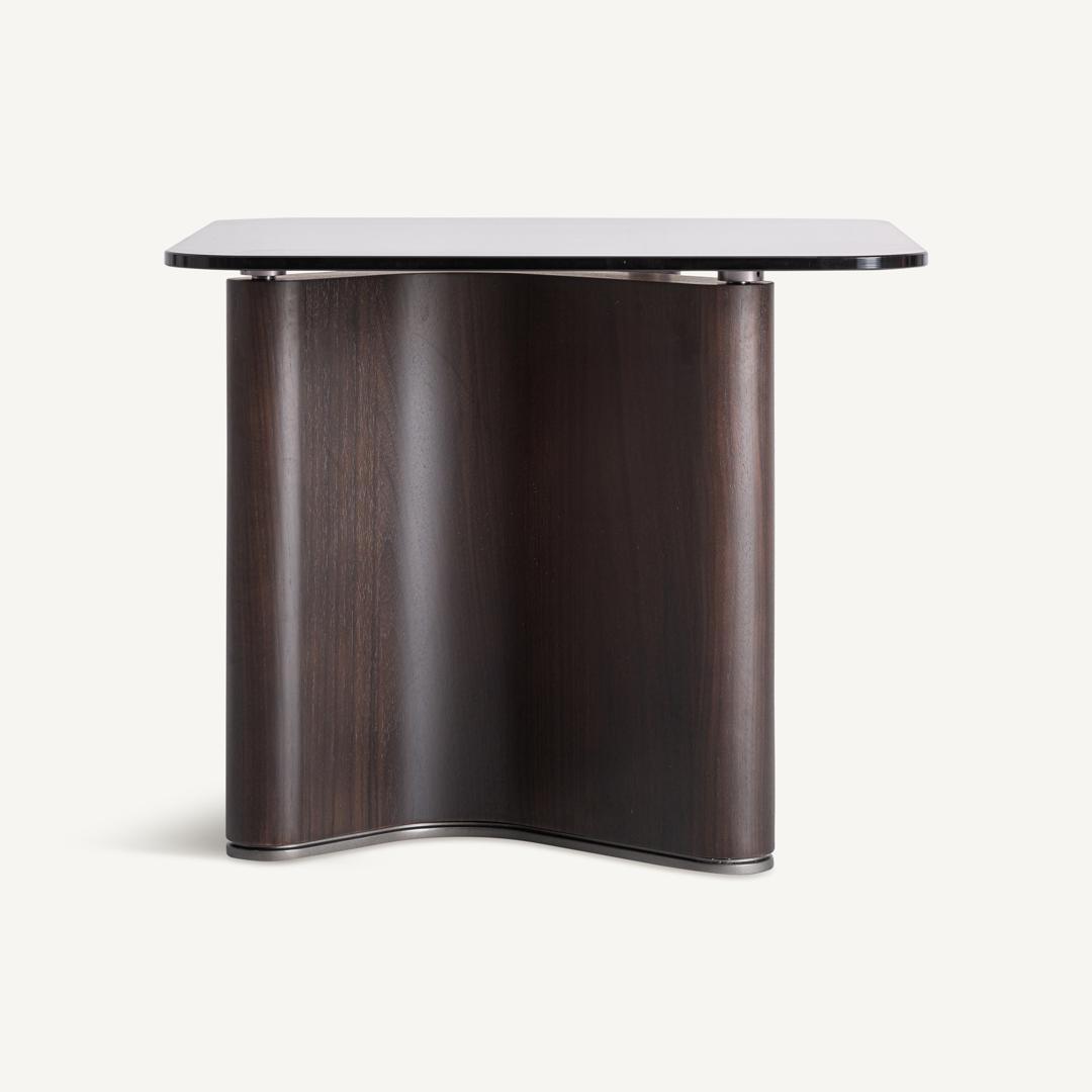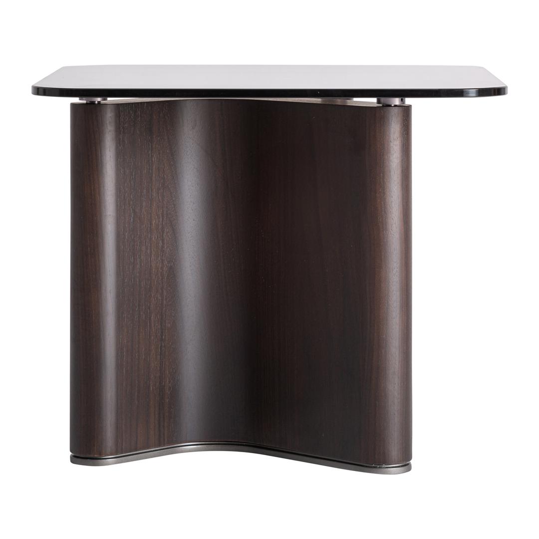Приставной столик Bransby в современном стиле, изготовлен из чёрного ясеня в сочетании с серым закалённым стеклом. Разборный. Ширина: 60 см, Глубина: 60 см, Высота: 50 см