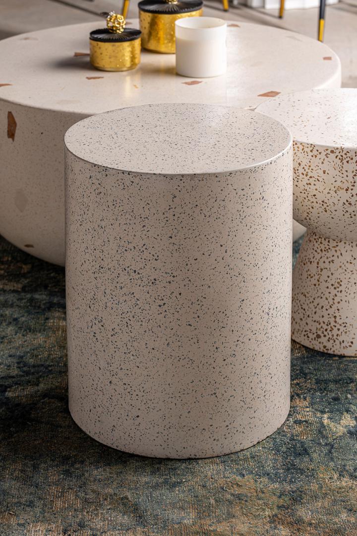 Приставной столик albenga, белый цвет, современный стиль. Изготовлен из терраццо.