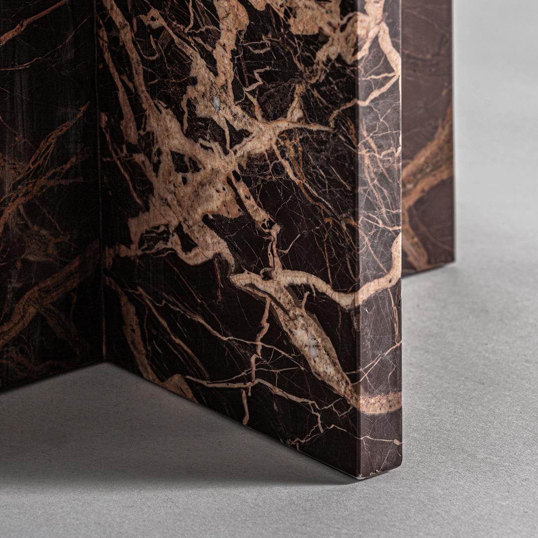 Приставной столик Rubin — это ода дизайну ар-деко со скульптурным и изысканным силуэтом. Арочная структура, выполненная из темного мрамора с золотистыми прожилками, создает изящное и сбалансированное визуальное взаимодействие. Это функциональный предмет с большой декоративной ценностью, идеально подходящий для интерьеров, стремящихся к изысканной и неподвластной времени эстетике.