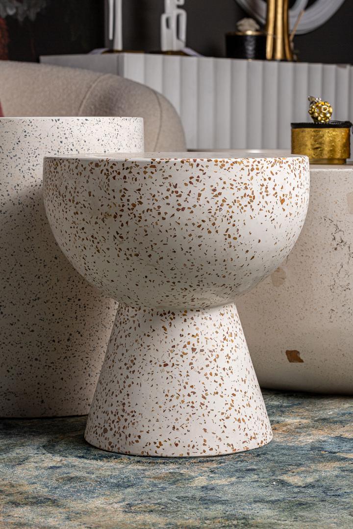 Приставной столик albenga, белый цвет, современный стиль. Изготовлен из терраццо.