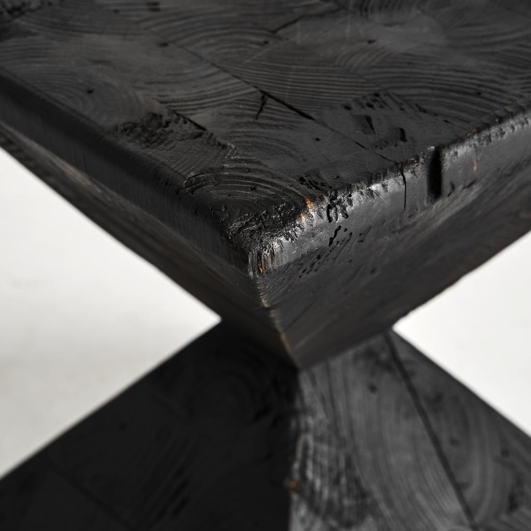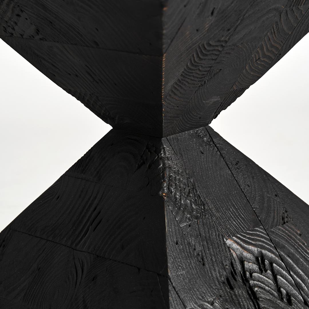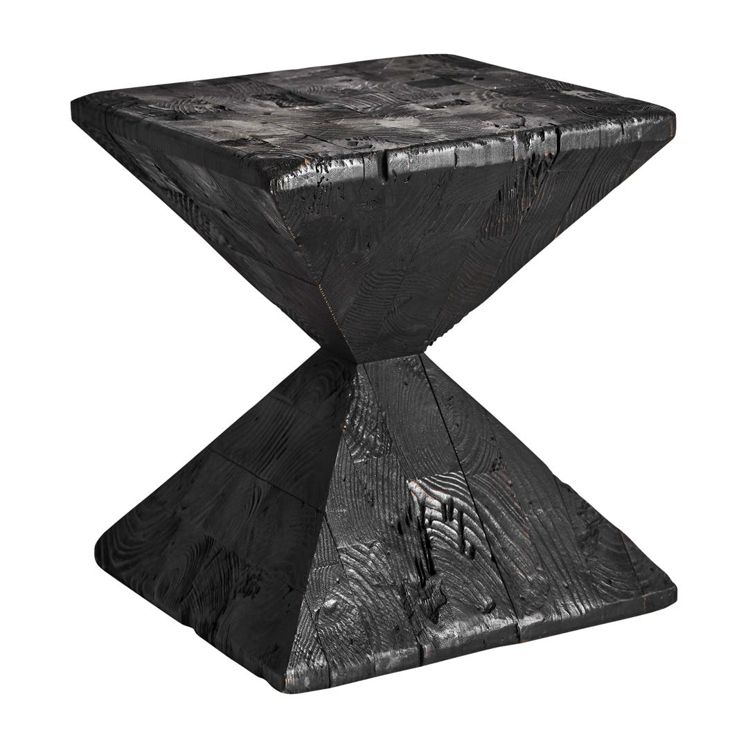 Приставной столик Vievy черного цвета в стиле арт-деко. Изготовлен из переработанной сосновой древесины.
