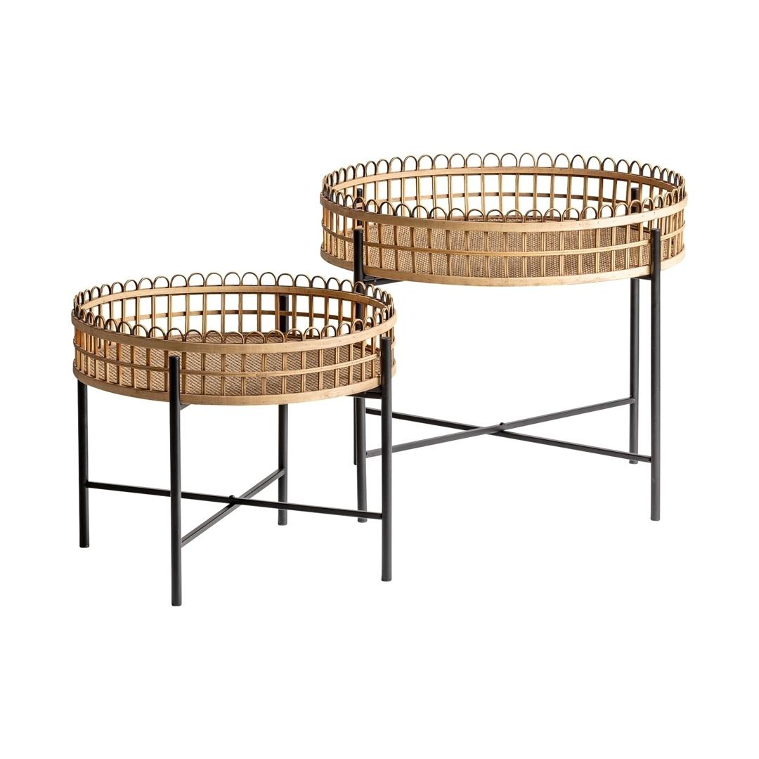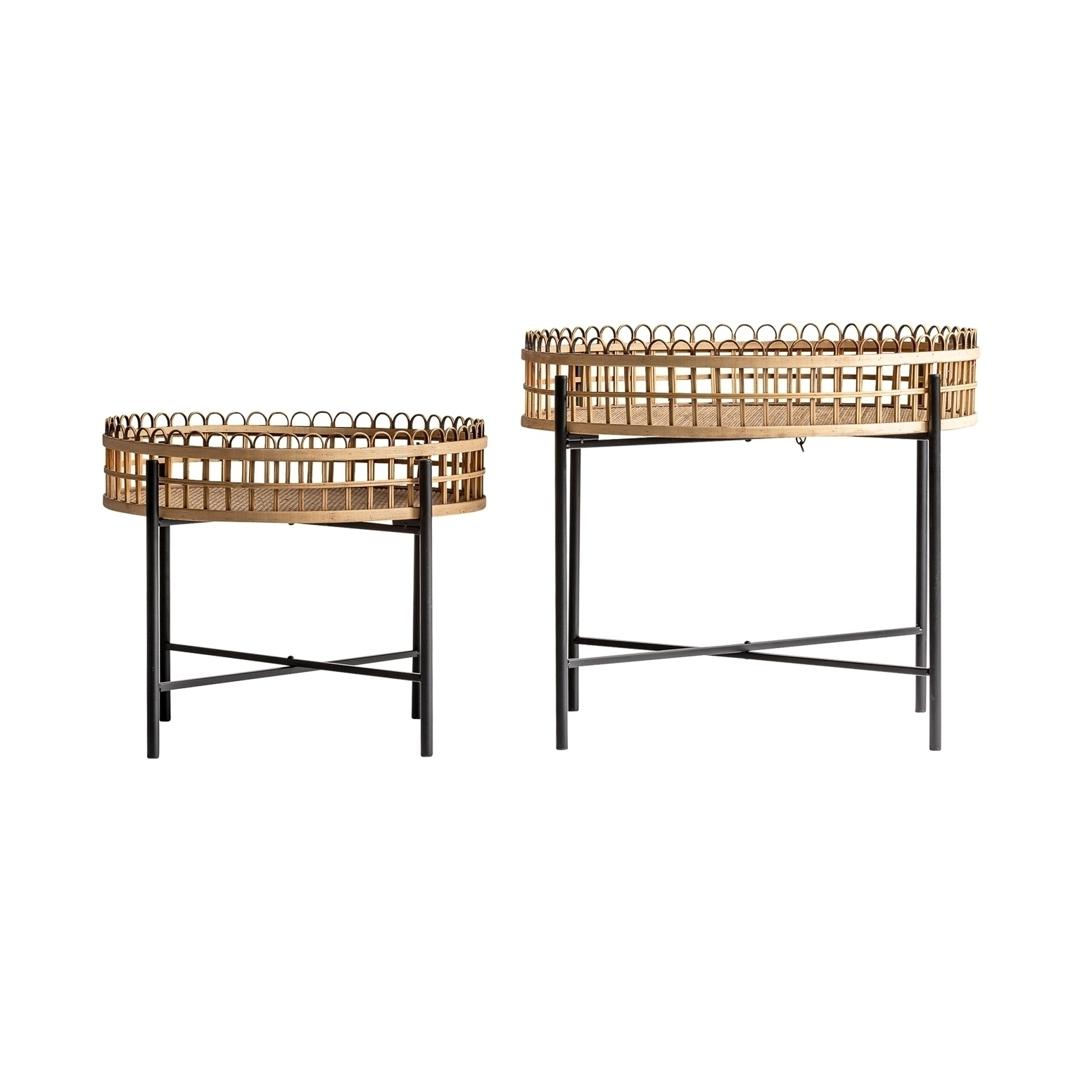Набор столиков TRAVNIK от фабрики Vical — ротанговая столешница с бамбуковой отделкой. Набор столиков TRAVNIK станут определяющим признаком колониального дизайна вашей обстановки. Объединенные в столешнице ротанг и бамбук усиливают эффект уникального вида, цвета и фактуры. А стройные металлический ножки демонстрируют тенденции для современной мебели. Столики сборные. Они состоят из металлической стойки и круглой плетеной столешницы. Стойка имеет трубчатую структуру, которая окрашена в черный цвет матовой порошковой краской. Для прочности конструкции ножки усилены поперечными перекладинами. А для защиты напольного покрытия предусмотрены пластиковые наконечники. Размер большого столика: диаметр столешницы - 64 см, высота — 53 см. Вес — 4,4 кг. Изделия требуют деликатного ухода, не предназначены для эксплуатации на открытом воздухе. Потребуется минимальная сборка. Инструкция и крепеж включены в комплектацию.