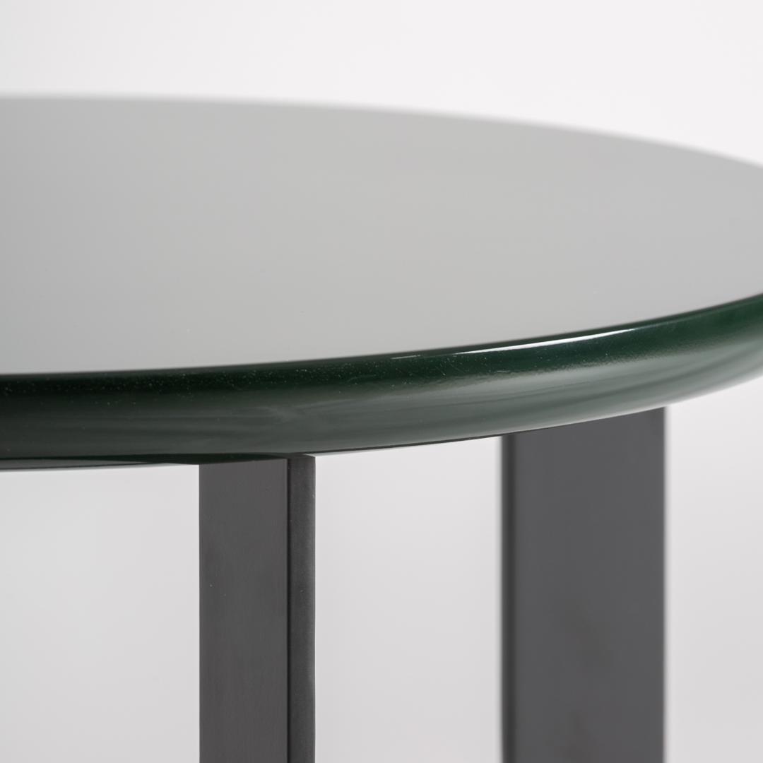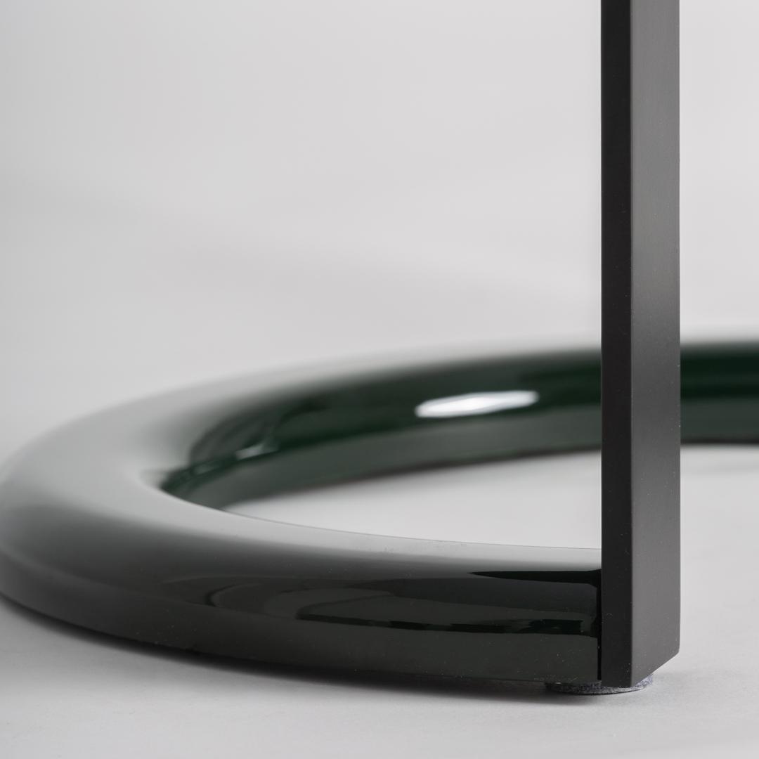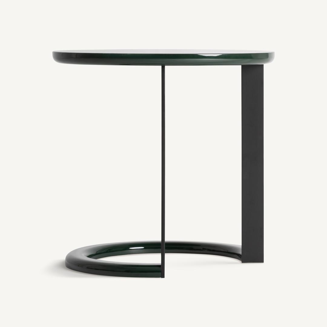 Приставной столик, изготовленный из зеленого МДФ с лакированным покрытием в сочетании с черным железом. Ширина: 48 см, Глубина: 48 см, Высота: 48 см