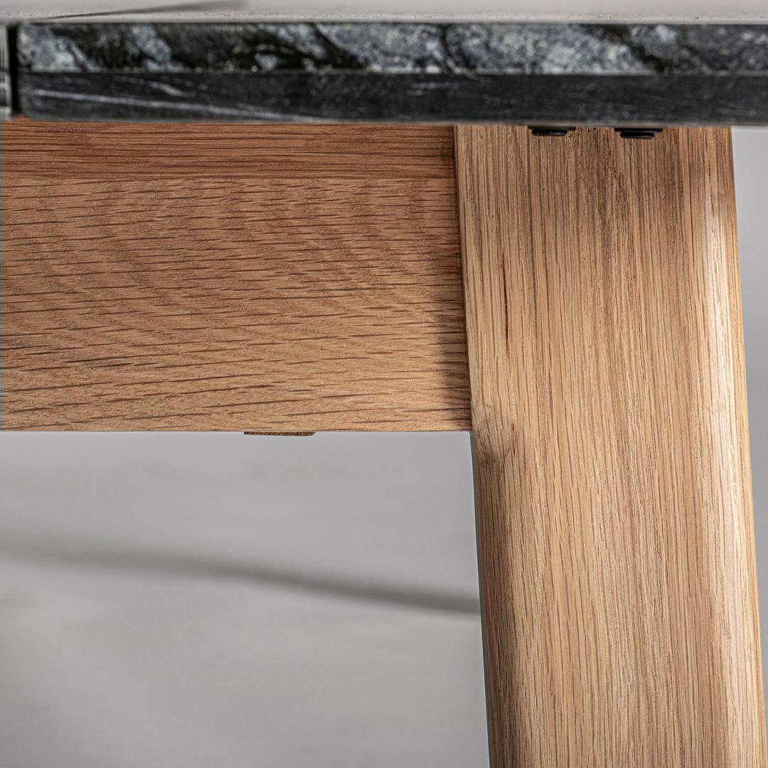 Журнальный столик Nara от VICALDESIGN, разработанный Франсеском Рифе, сочетает в себе прочность черного мрамора и теплоту дуба в сбалансированной и современной композиции. Его сдержанный и хорошо сбалансированный дизайн придает элегантность и утонченность, органично вписываясь в жилые пространства, где приоритет отдается гармонии, натуральным материалам и минималистичному дизайну. Ширина: 160 см, Глубина: 70 см, Высота: 34 см