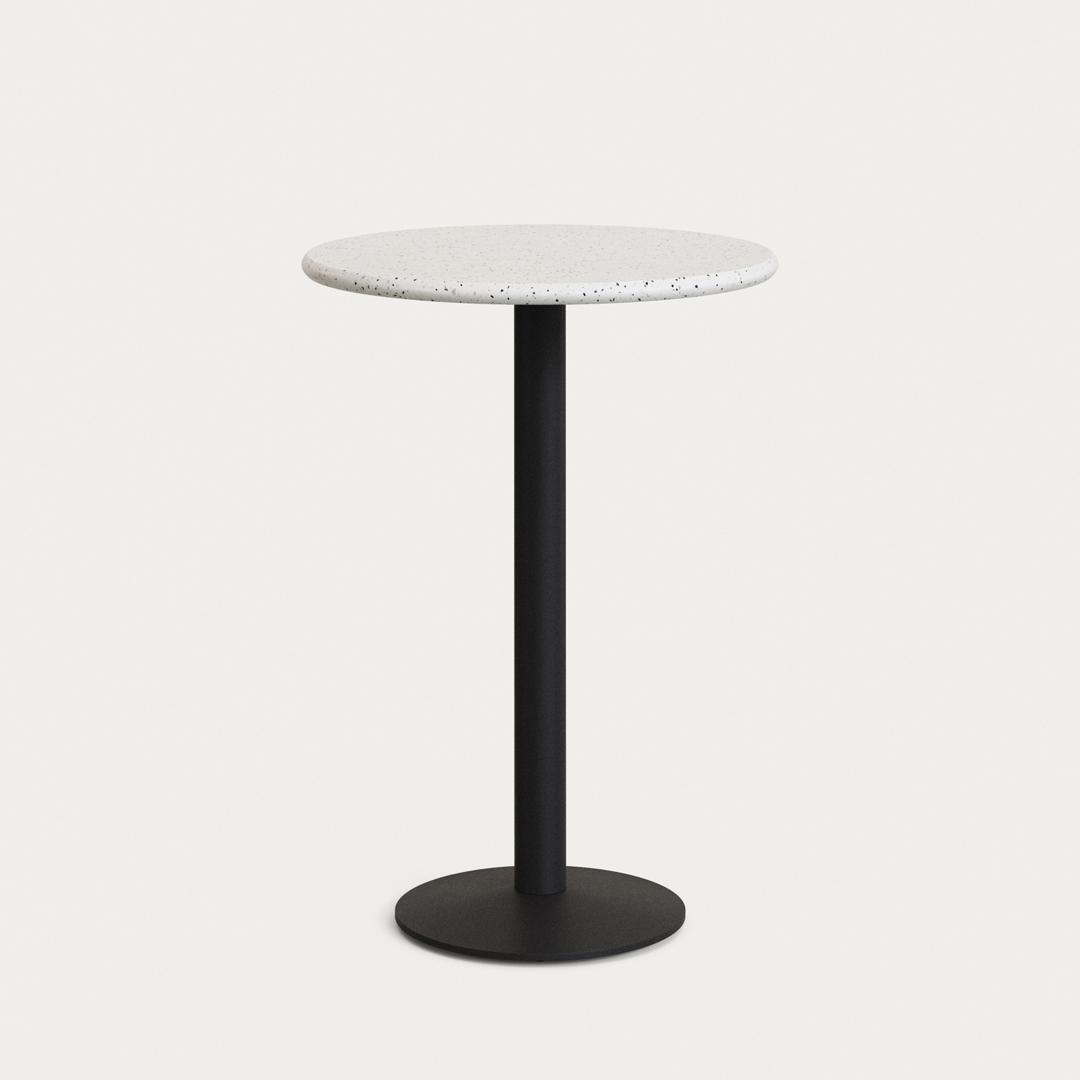 Круглый высокий барный стол Saura из черного металла со столешницей из белой терраццо, 96 x Ø70 см.