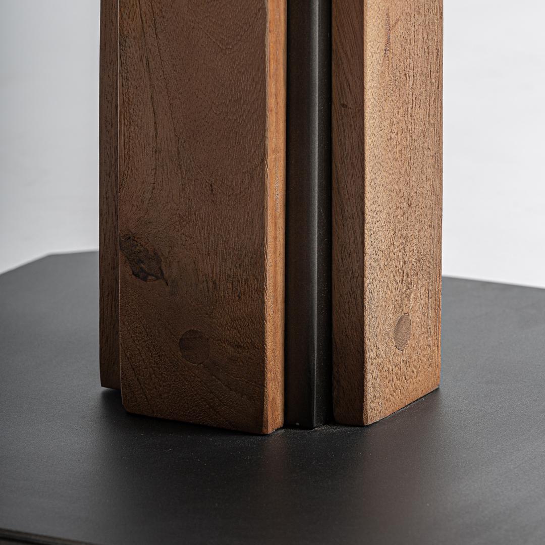 Барный стол. Изготовлен из древесины акации в сочетании с железом.