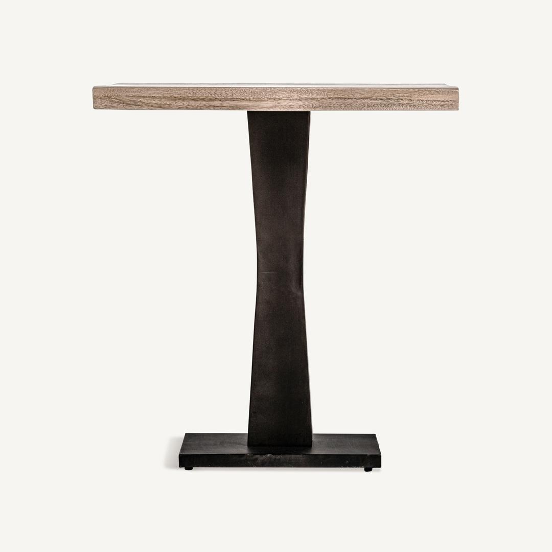 Стеклянный барный стол, цвет черный/натуральный, индустриальный стиль. Изготовлен из дерева манго в сочетании с железом. Съемное изделие. Ширина: 70 см, Глубина: 70 см, Высота: 75 см