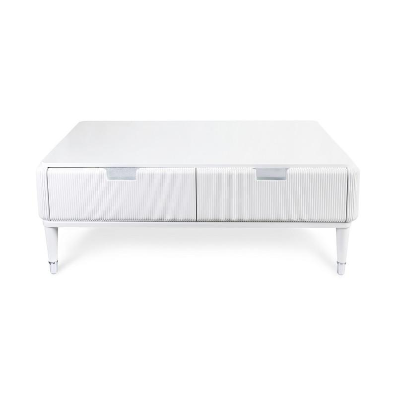 Журнальный стол от итальянского бренда Fratelli Barri. Закругленная форма и рифленые фасады выглядят очень актуально. Ножки прямые круглые, зауженные к низу. На ножках металлические колпачки. У стола 4 ящика - по 2 с каждой длинной стороны. Ручка - выемка на фасаде. Вставка за ручкой - металлическая пластина. Отделка - белый глянцевый лак. Выполнен из массива дерева и высококачественного МДФ класса Е1. Цвет фурнитуры - хром. Ящики оснащены доводчиками для плавного закрывания. Данный предмет является частью коллекции Rimini. Вы можете оформить гостиную, столовую, спальню, кабинет и другие комнаты Вашего дома в едином стиле.