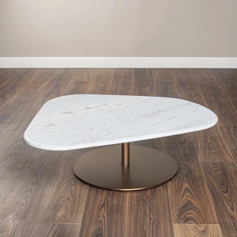 Журнальный столик от итальянского бренда Fratelli Barri - идеальное решение для тех, кто ценит в интерьере стиль и функциональность. Столешница - мрамор Dream blue Matt ( натуральный мрамор может иметь разный природный рисунок и разную насыщенность цвета, от практически белого до бело-голубого с яркими голубыми жилами) . Основание столика металлическое в цвете бронза.