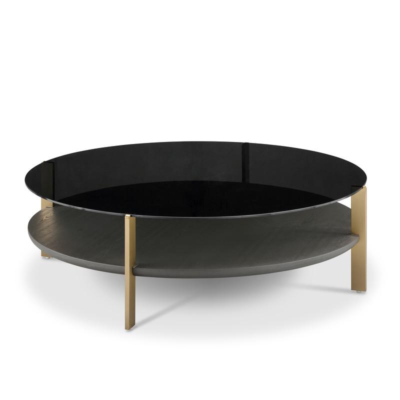 Большой круглый журнальный столик от итальянского бренда Fratelli Barri - воплощение функционала и утонченного стиля для современной гостиной. Основание столика выполнено в цвете матовая бронза, верхняя столешница из черного закаленного стекла, нижняя в отделке темным шпоном.