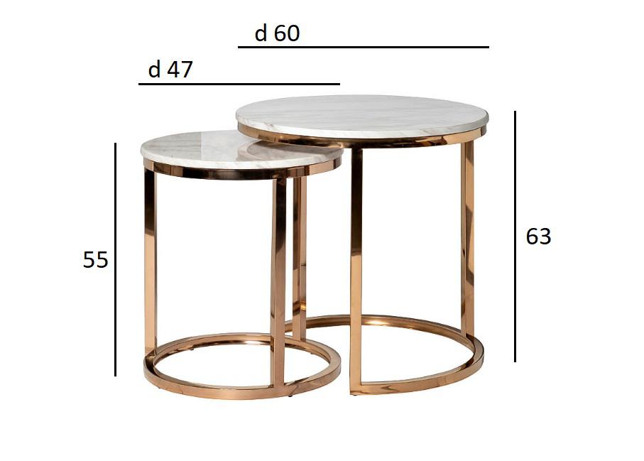 description-full - Комплект журнальных столов для гостиной – удачный выбор для посиделок с друзьями или семьей. Предметы сделаны по принципу матрешек. Эти круглые журнальные столы немного различаются размерами. В результате один из них удобно задвигается под другой, экономя пространство. При необходимости столики можно раздвинуть, если у вас намечаются гости. Такой набор журнальных столов выглядит необычайно стильно и презентабельно. Мебель выполнена со вкусом, отвечает современным требованиям качества. В состав входит нержавеющая сталь и искусственный мрамор. Высокое качество материалов обуславливает длительную эксплуатацию предметов интерьера без потери их качеств. Максимальная нагрузка на большой столик - 30кг, на маленький - 25кг. Размеры столов - 60х60х63, 47х47х55 Комплект столов в таком же дизайне, но в большем размере - арт. 57EL-CT101А.